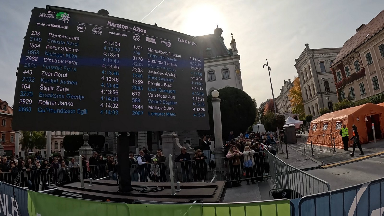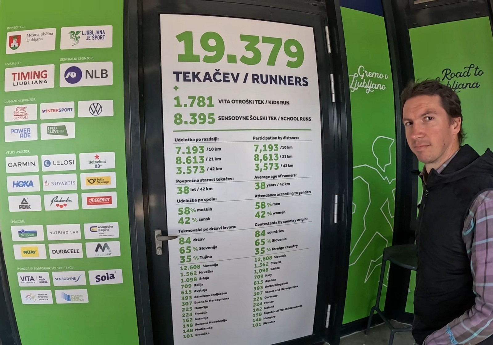 Ljubljanski maraton, je ove godine ugostio brojne trkače iz čak 84. države svijeta, a osim domaćina i Slovenije, najviše je sudjelovalo trkača iz Hrvatske, Srbije, Italije i Austrije, a zatim iz Velika Britanije, pa BiH i Njemačke. Baš kao i Budimpešta i Ljubljana je imala jako puno trkača na utrci građanja, ali i utrku srednjoškolaca. S obzirom da su ove utrke dan prije, ili sat vremena prije glavnog događaja, nisam bio u mogućnosti popratiti ih svojom kamerom.