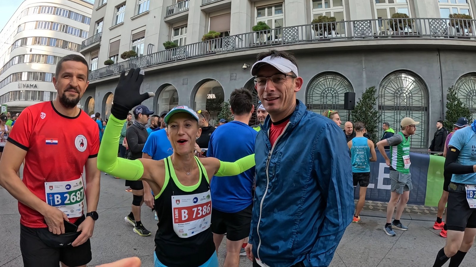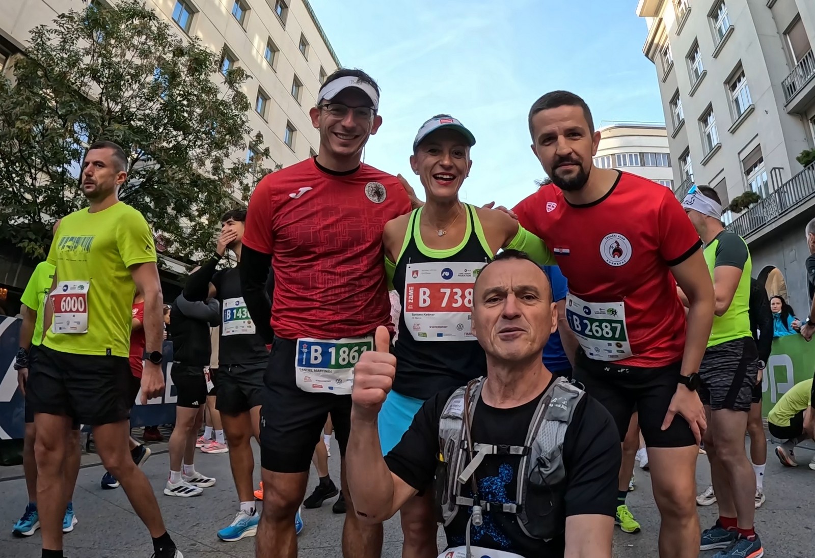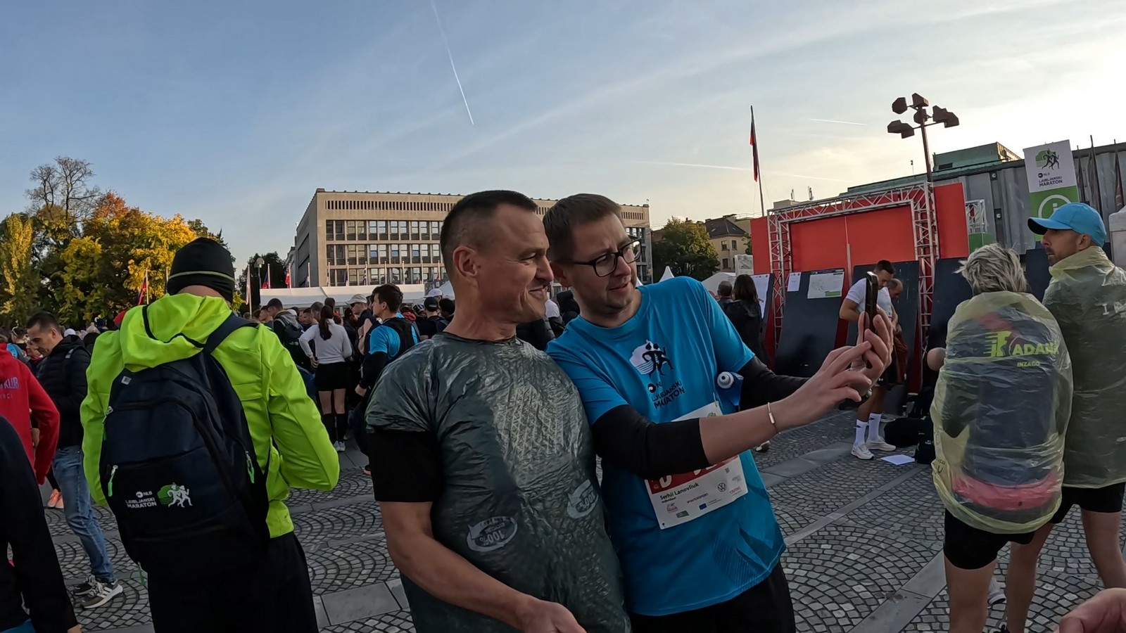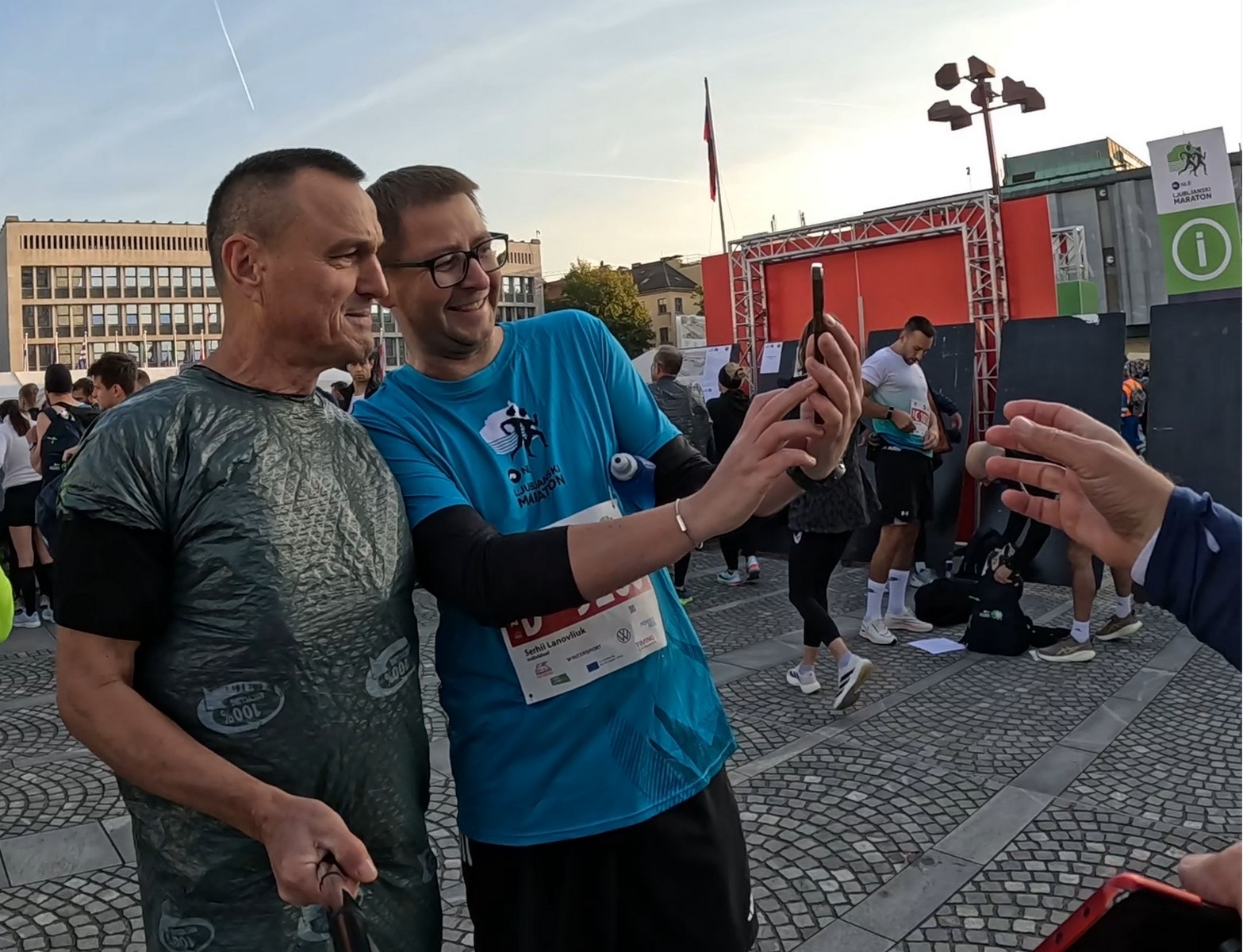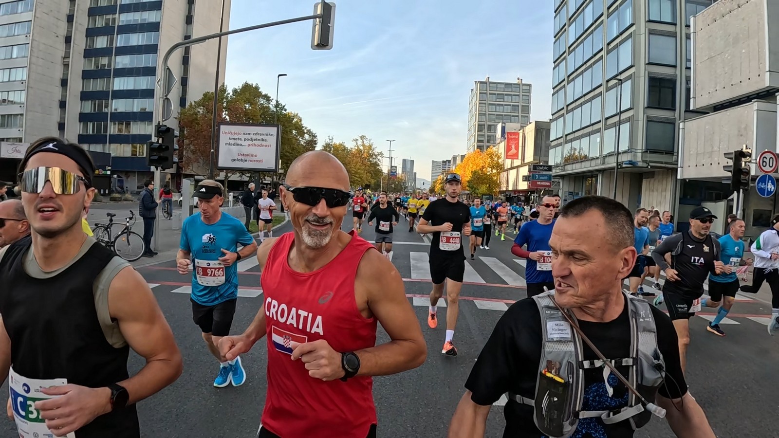 Video zapis je opsežan i sadržava sve što vas može biti zanima na ovom događaju. Osim zgodnih trkača imate i nešto malo zgodnih trkačica i neobično lijepe volontere. Sebastian iz Francuske je gledao moje video zapise i došao je osobno provjeriti kako izgleda taj Ljubljanski maraton. Što reći, osim da se dobar glas daleko čuje, a loš još dalje. 🙂 Kao i uvijek do sada trčali smo i družili se sa ekipom istomišljenika (čitaj istopatnika), a ja sam dobio priliku osobno upoznati trkače iz Grčke, sa Kosova, Ukrajine, Italije… Mnogi su prilazili pozdraviti i upoznati se osobno, jer se puno trkača međusobno prati samo preko sportskih aplikacija (Strava ili Garmin Connect). Zaista je lijepo je sve te ljude napokon vidjeti uživo.
