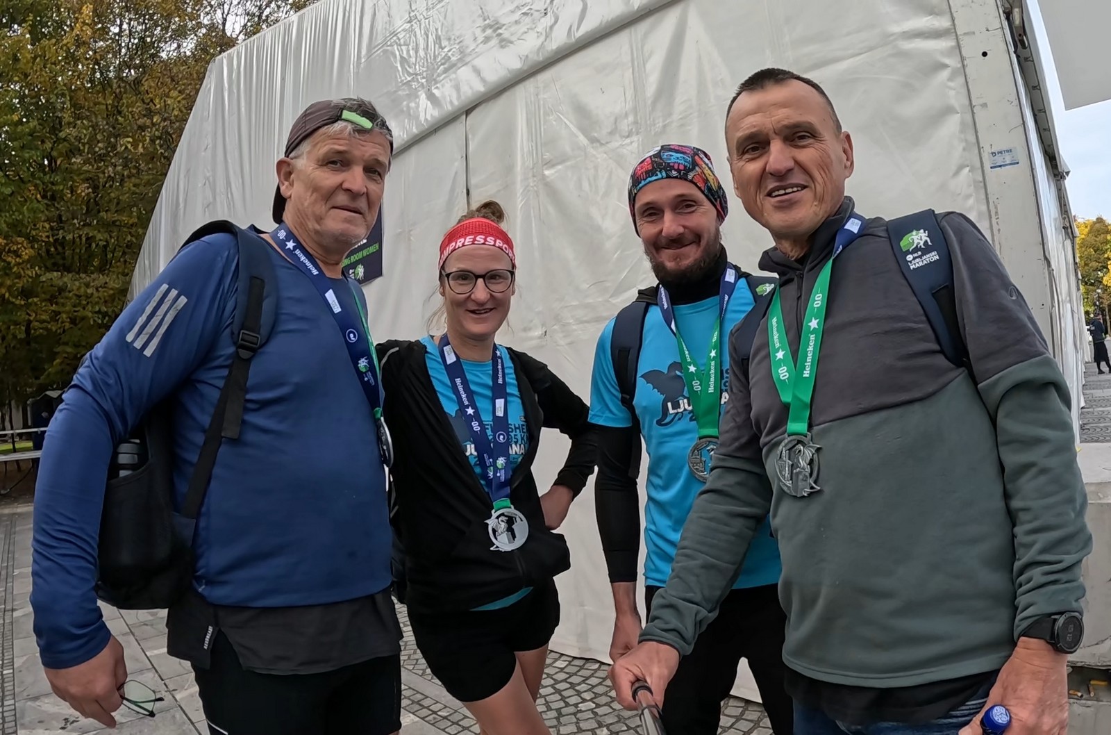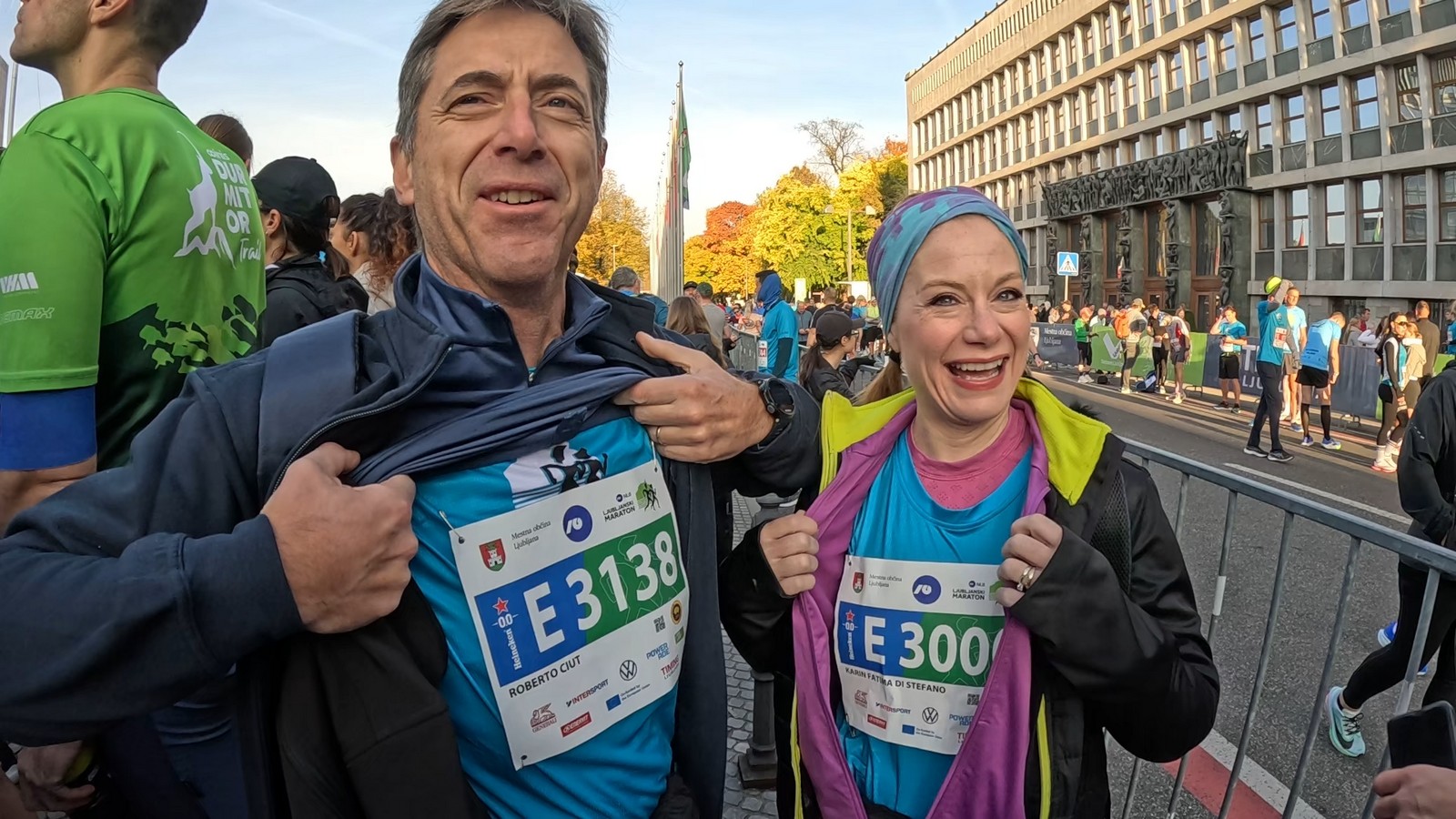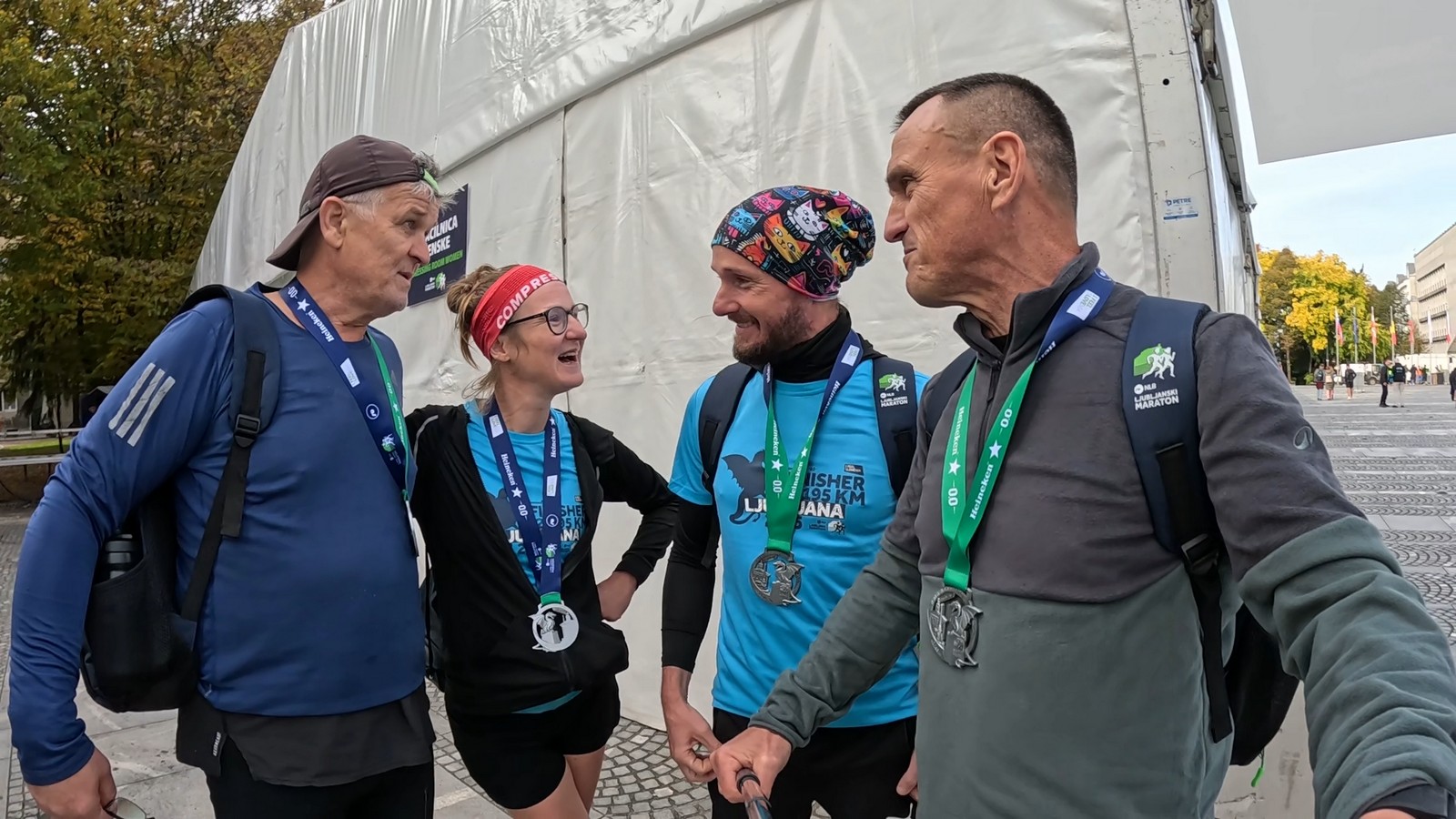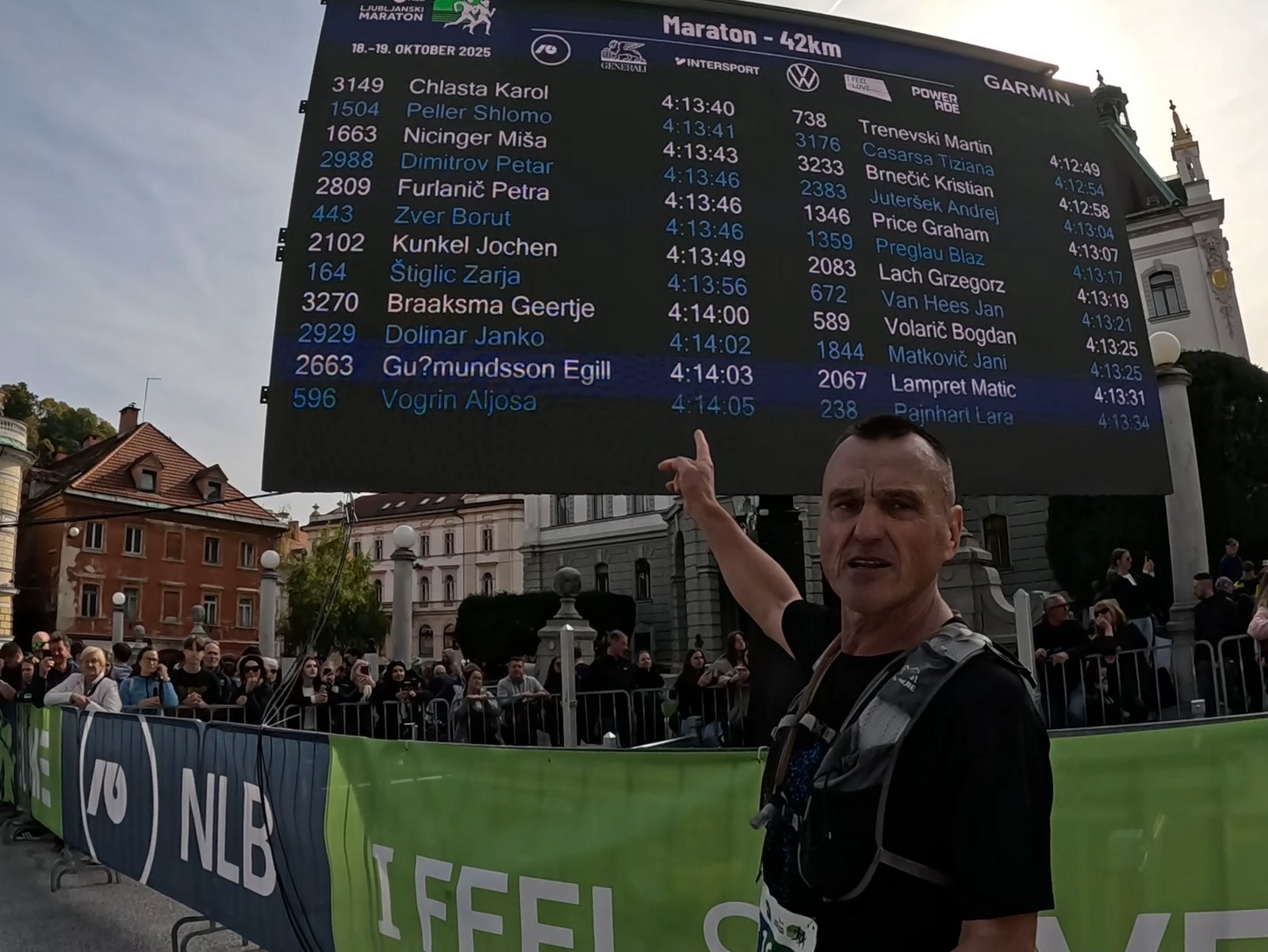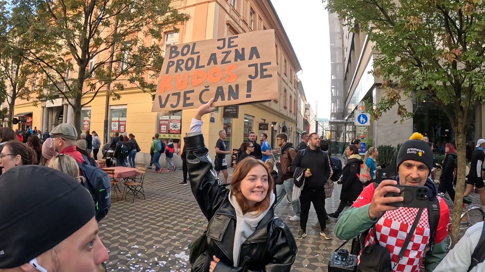 Video zapis je opsežan i sadržava sve što vas može biti zanima na ovom događaju. Osim zgodnih trkača imate i nešto malo zgodnih trkačica i neobično lijepe volontere. Sebastian iz Francuske je gledao moje video zapise i došao je osobno provjeriti kako izgleda taj Ljubljanski maraton. Što reći, osim da se dobar glas daleko čuje, a loš još dalje. 🙂 Kao i uvijek do sada trčali smo i družili se sa ekipom istomišljenika (čitaj istopatnika), a ja sam dobio priliku osobno upoznati trkače iz Grčke, sa Kosova, Ukrajine, Italije… Mnogi su prilazili pozdraviti i upoznati se osobno, jer se puno trkača međusobno prati samo preko sportskih aplikacija (Strava ili Garmin Connect). Zaista je lijepo je sve te ljude napokon vidjeti uživo.