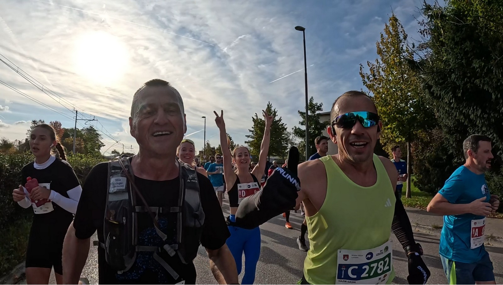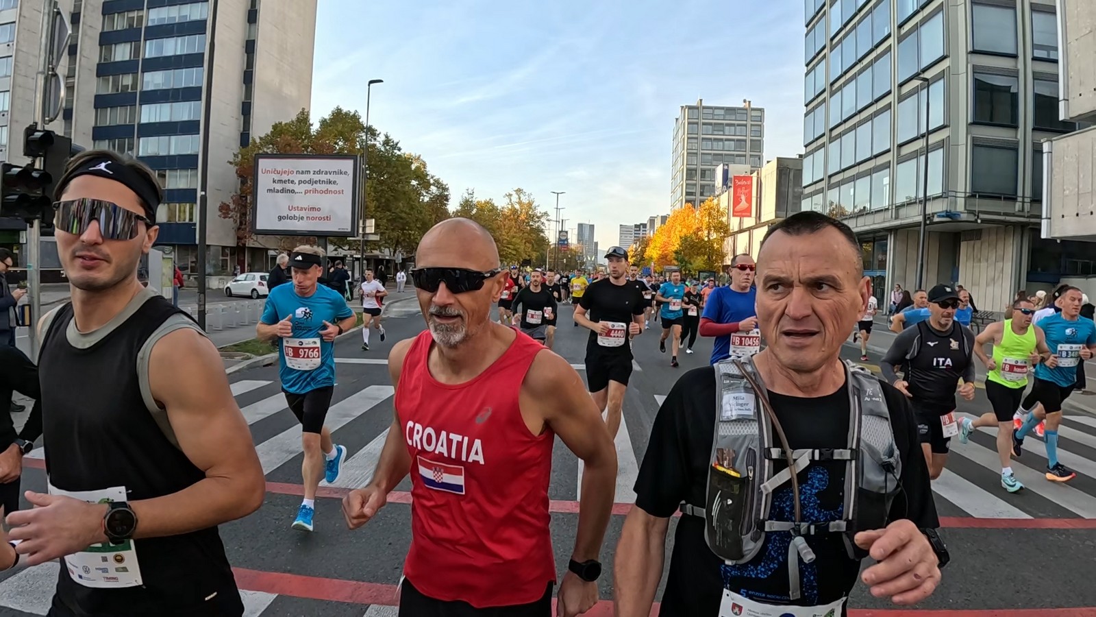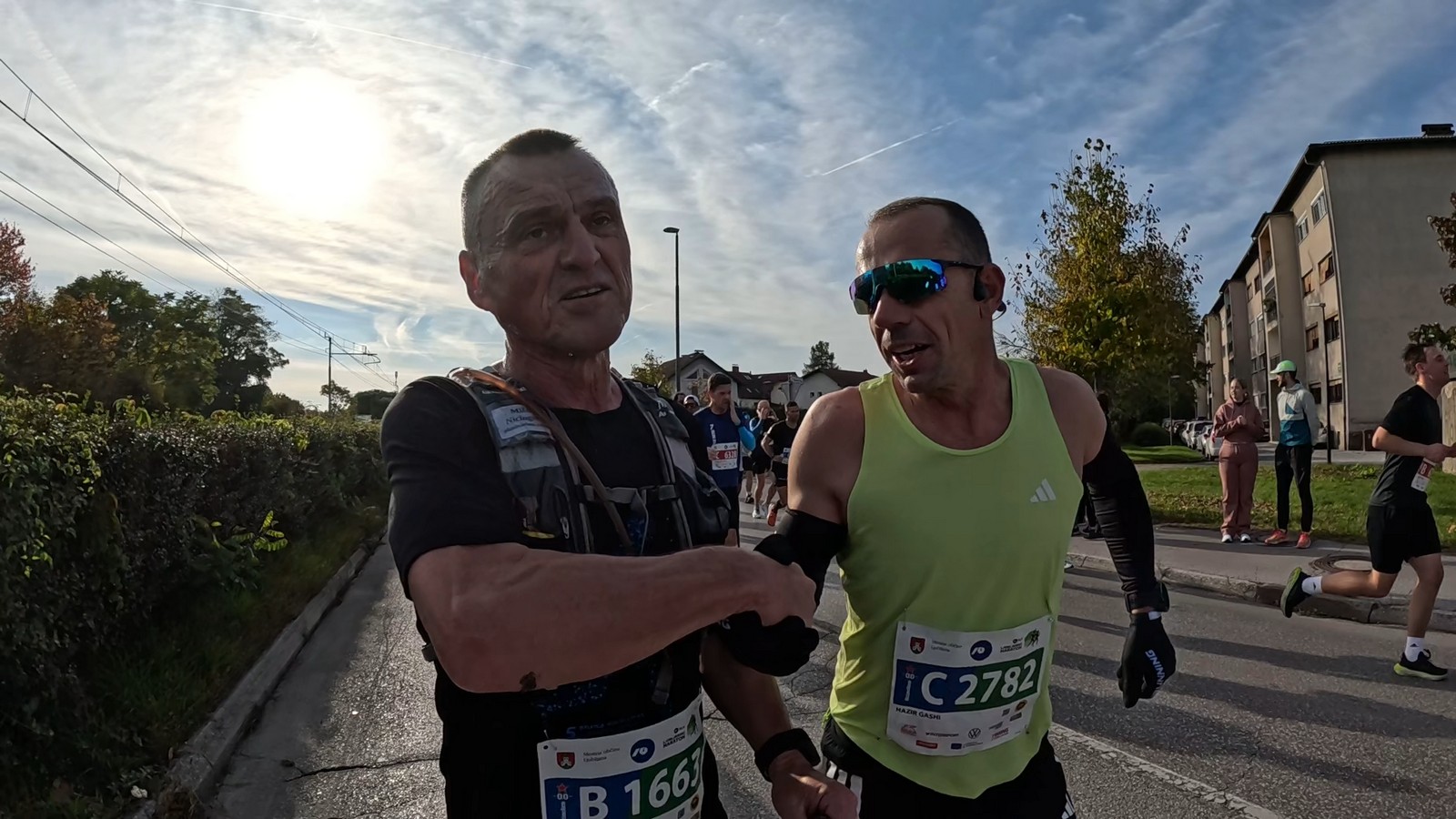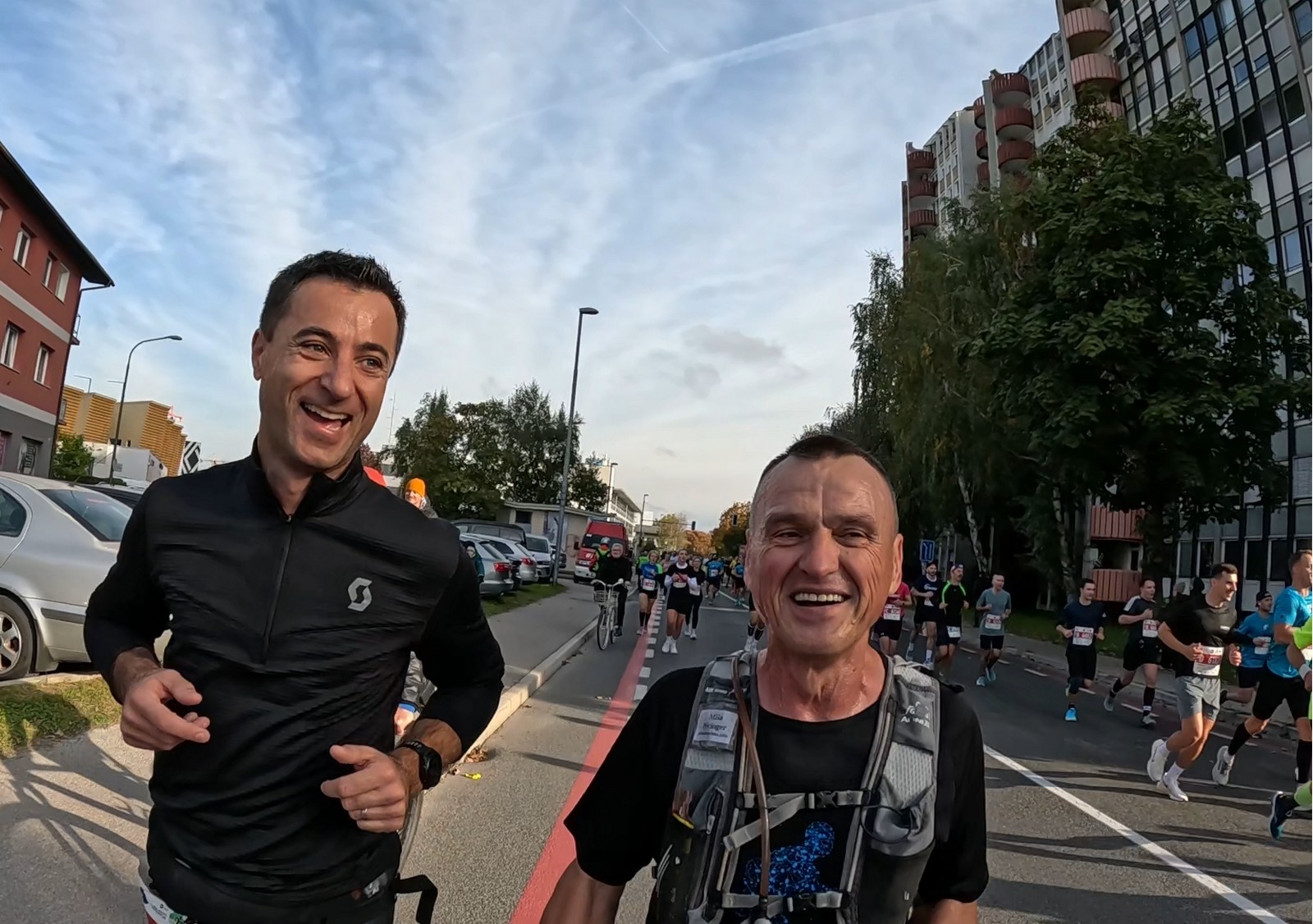 Video zapis je opsežan i sadržava sve što vas može biti zanima na ovom događaju. Osim zgodnih trkača imate i nešto malo zgodnih trkačica i neobično lijepe volontere. Sebastian iz Francuske je gledao moje video zapise i došao je osobno provjeriti kako izgleda taj Ljubljanski maraton. Što reći, osim da se dobar glas daleko čuje, a loš još dalje. 🙂 Kao i uvijek do sada trčali smo i družili se sa ekipom istomišljenika (čitaj istopatnika), a ja sam dobio priliku osobno upoznati trkače iz Grčke, sa Kosova, Ukrajine, Italije… Mnogi su prilazili pozdraviti i upoznati se osobno, jer se puno trkača međusobno prati samo preko sportskih aplikacija (Strava ili Garmin Connect). Zaista je lijepo je sve te ljude napokon vidjeti uživo.