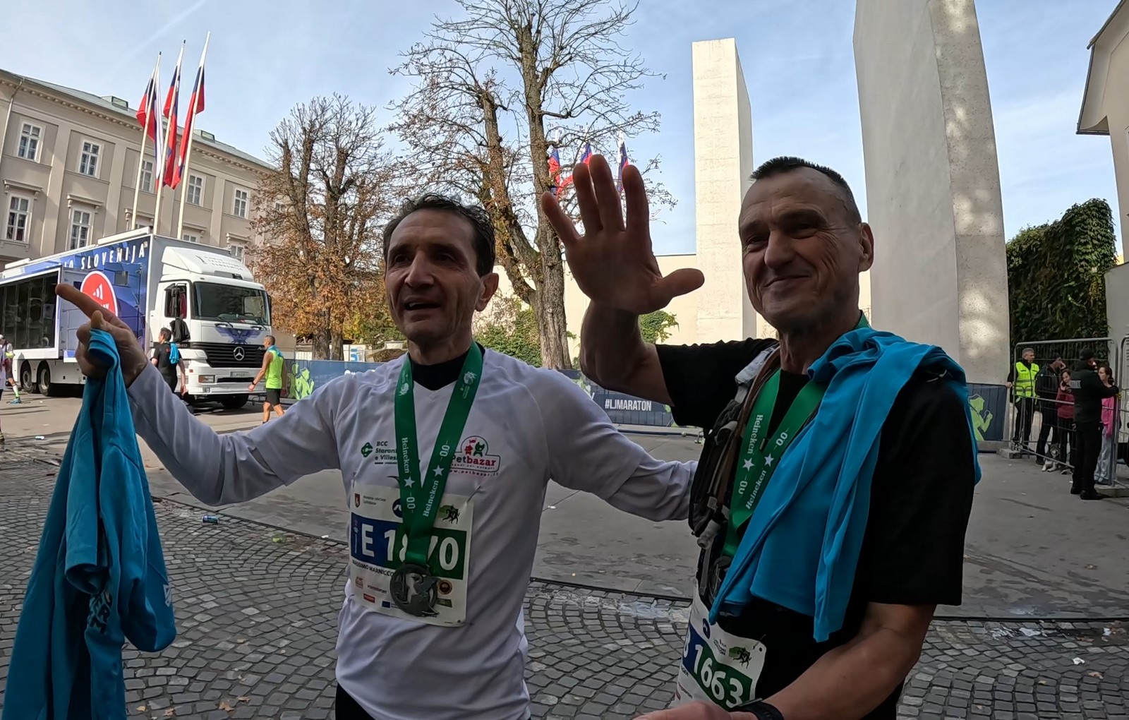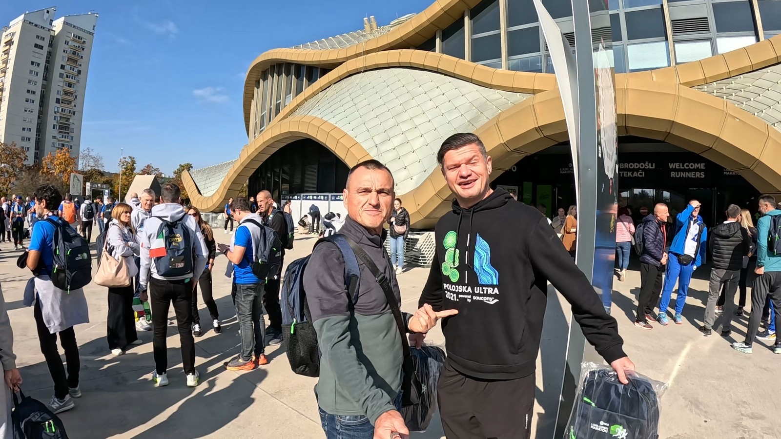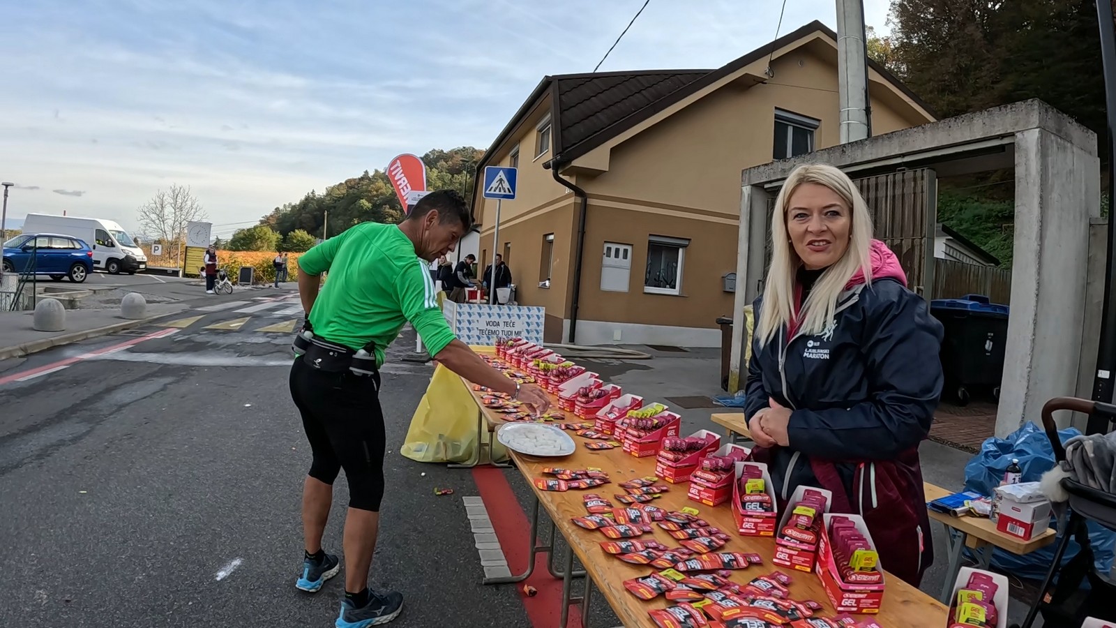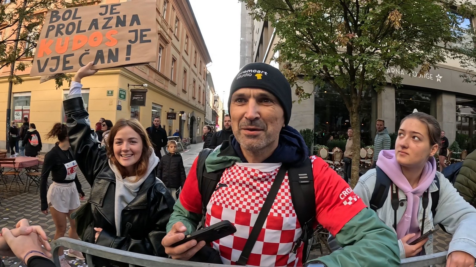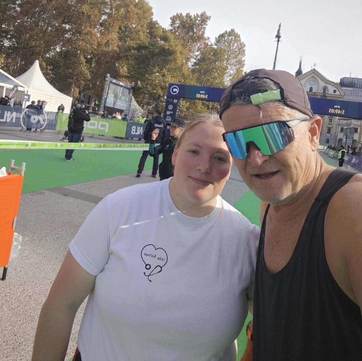 Video zapis je opsežan i sadržava sve što vas može biti zanima na ovom događaju. Osim zgodnih trkača imate i nešto malo zgodnih trkačica i neobično lijepe volontere. Sebastian iz Francuske je gledao moje video zapise i došao je osobno provjeriti kako izgleda taj Ljubljanski maraton. Što reći, osim da se dobar glas daleko čuje, a loš još dalje. 🙂 Kao i uvijek do sada trčali smo i družili se sa ekipom istomišljenika (čitaj istopatnika), a ja sam dobio priliku osobno upoznati trkače iz Grčke, sa Kosova, Ukrajine, Italije… Mnogi su prilazili pozdraviti i upoznati se osobno, jer se puno trkača međusobno prati samo preko sportskih aplikacija (Strava ili Garmin Connect). Zaista je lijepo je sve te ljude napokon vidjeti uživo.