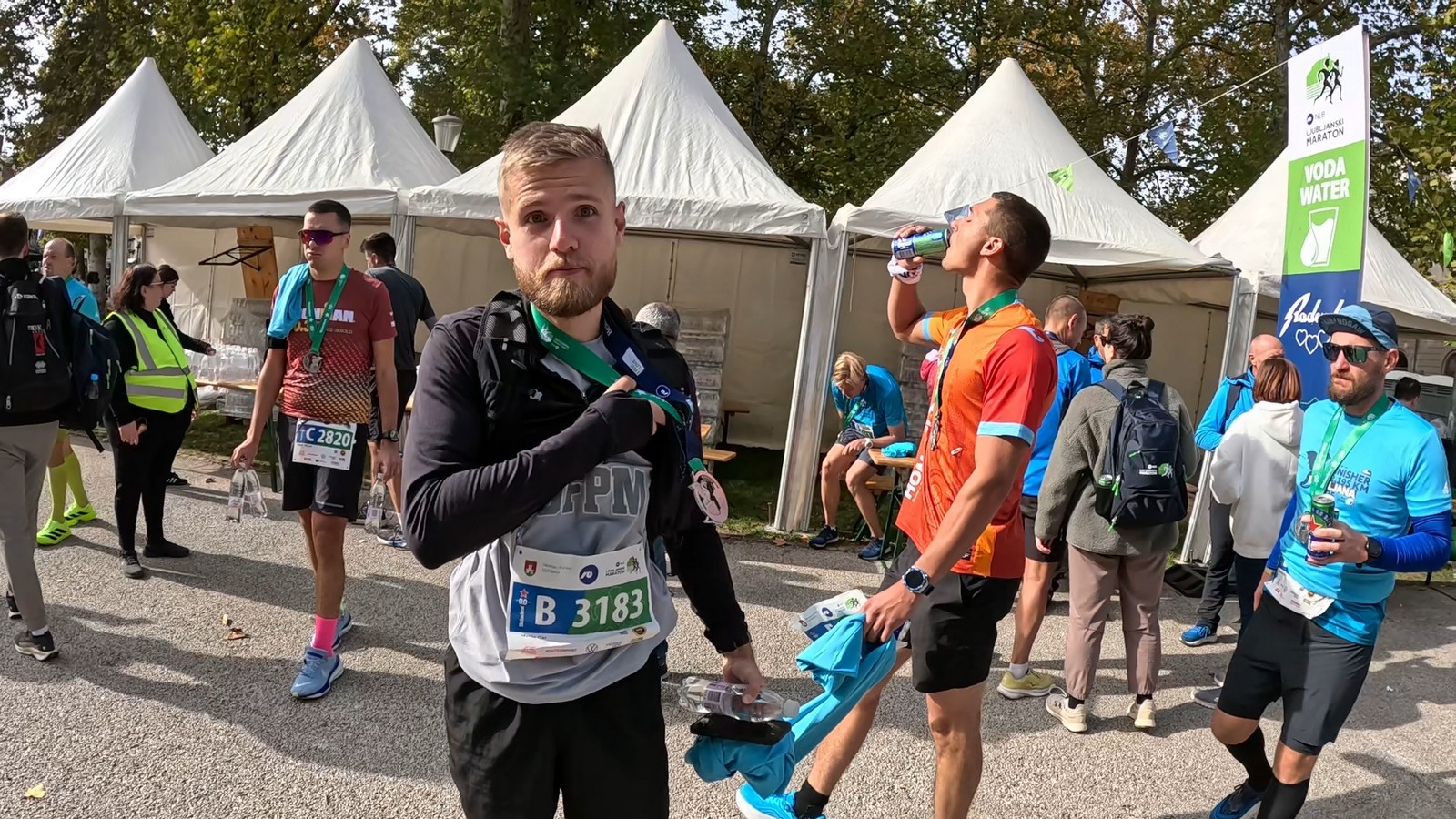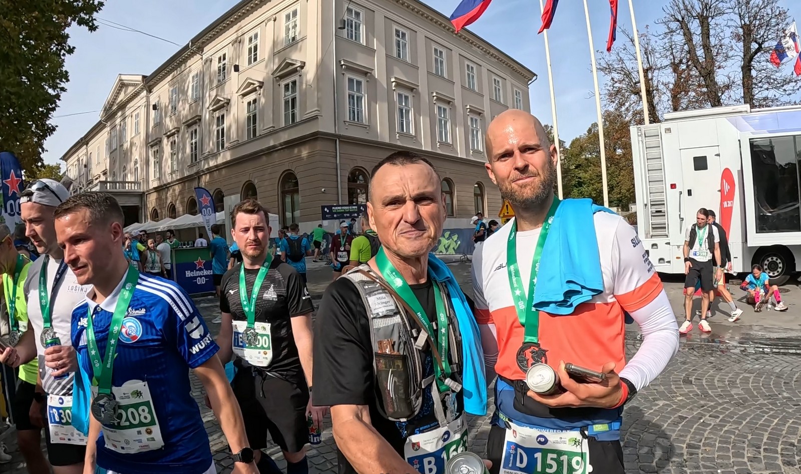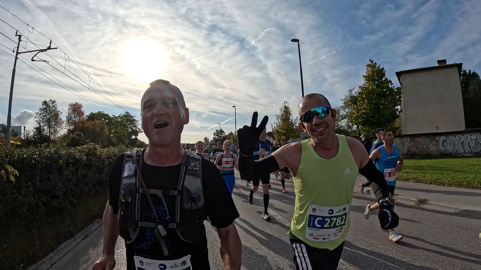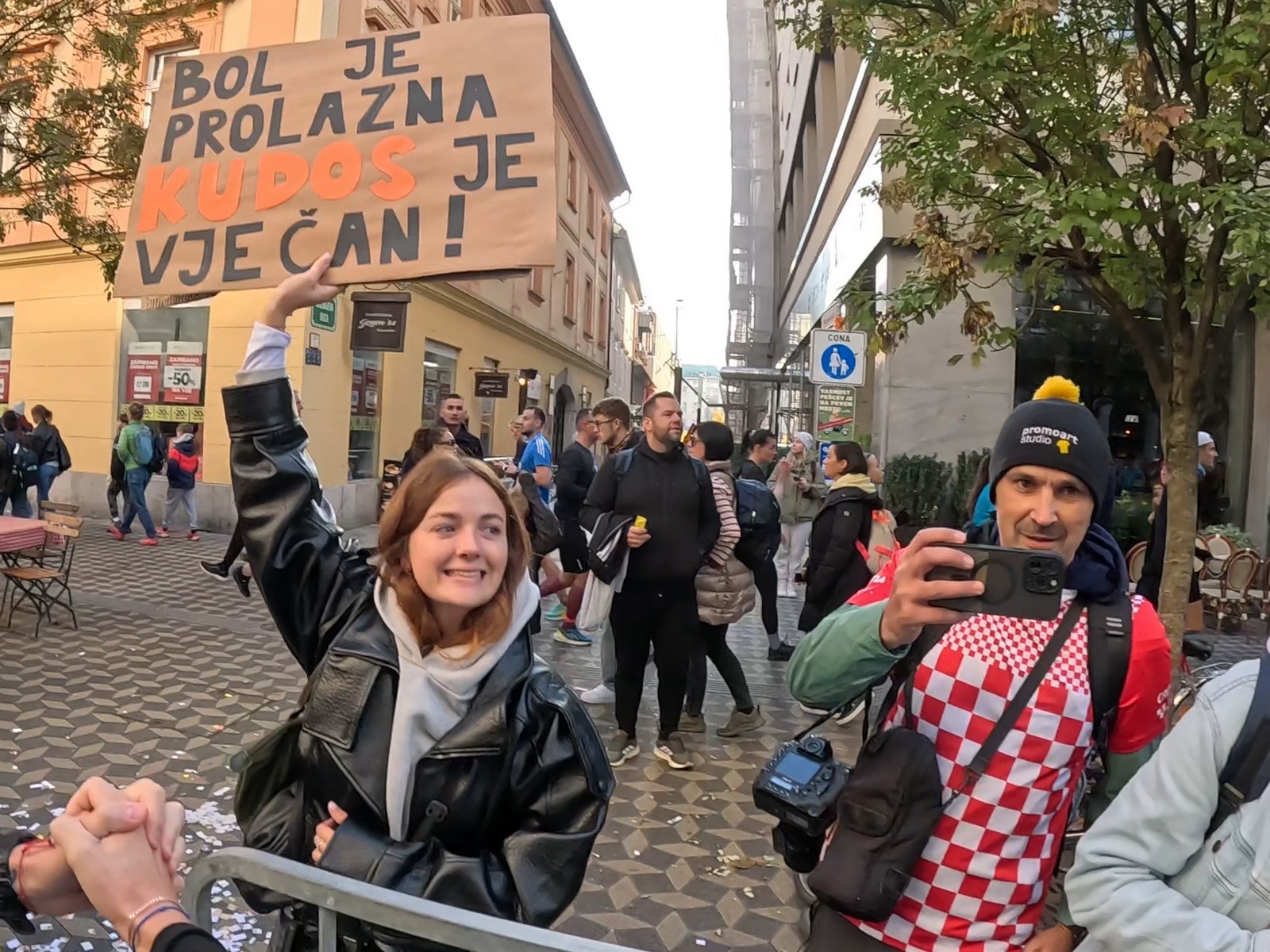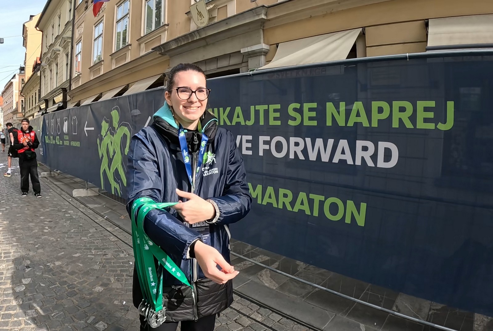 Video zapis je opsežan i sadržava sve što vas može biti zanima na ovom događaju. Osim zgodnih trkača imate i nešto malo zgodnih trkačica i neobično lijepe volontere. Sebastian iz Francuske je gledao moje video zapise i došao je osobno provjeriti kako izgleda taj Ljubljanski maraton. Što reći, osim da se dobar glas daleko čuje, a loš još dalje. 🙂 Kao i uvijek do sada trčali smo i družili se sa ekipom istomišljenika (čitaj istopatnika), a ja sam dobio priliku osobno upoznati trkače iz Grčke, sa Kosova, Ukrajine, Italije… Mnogi su prilazili pozdraviti i upoznati se osobno, jer se puno trkača međusobno prati samo preko sportskih aplikacija (Strava ili Garmin Connect). Zaista je lijepo je sve te ljude napokon vidjeti uživo.