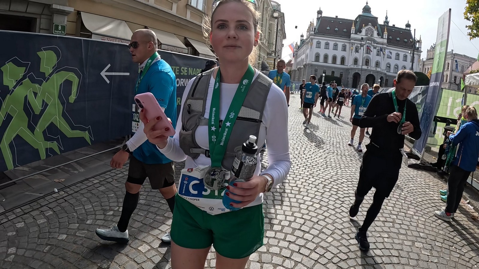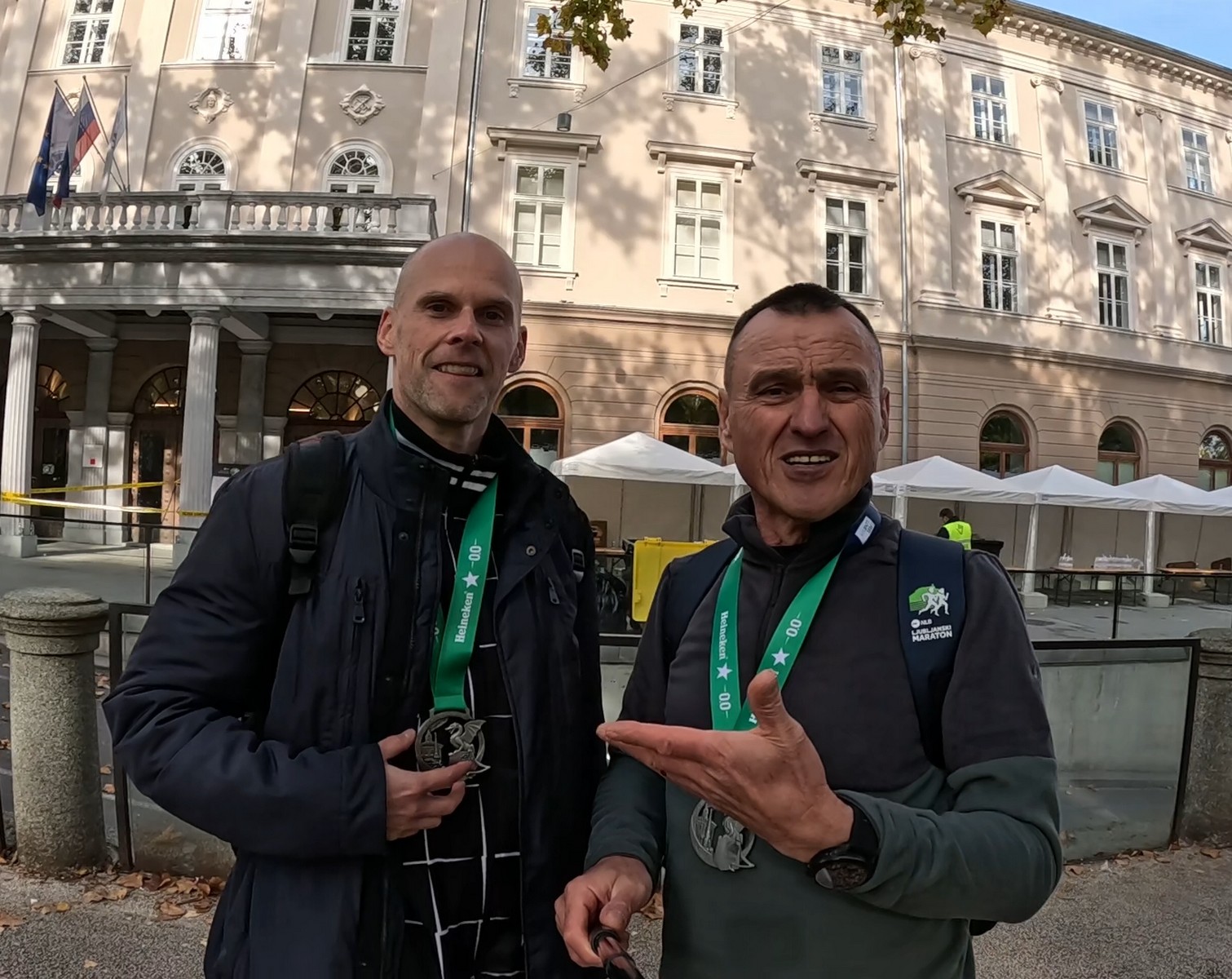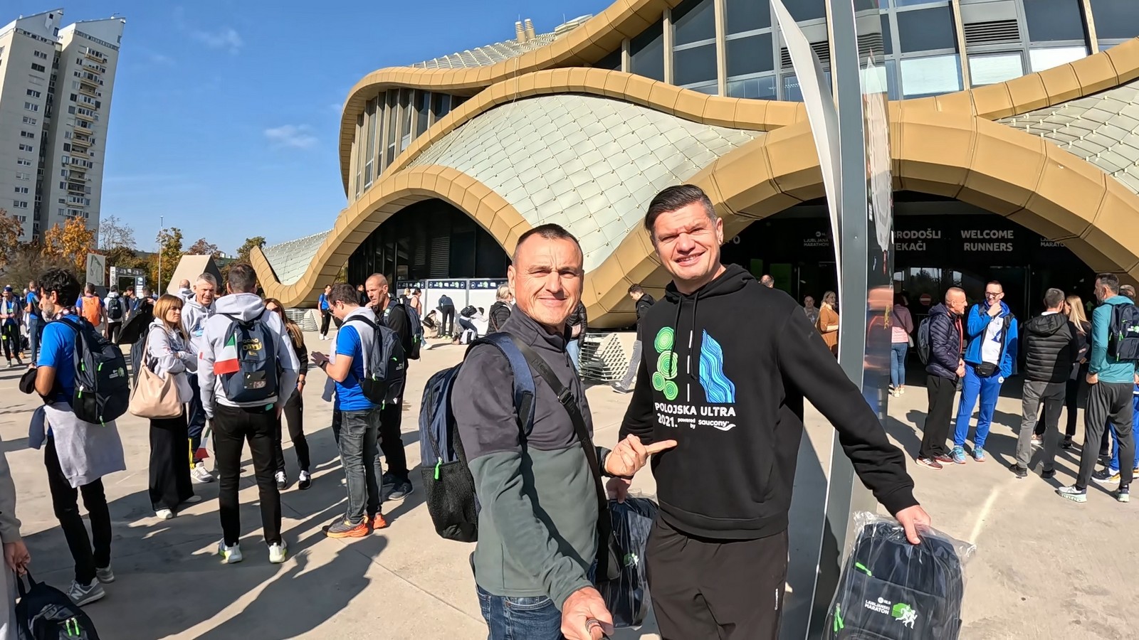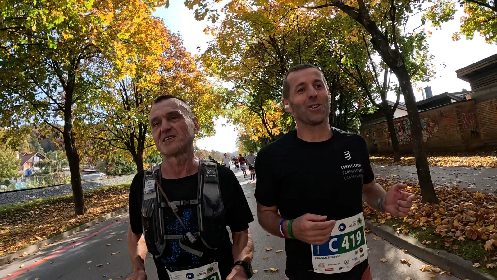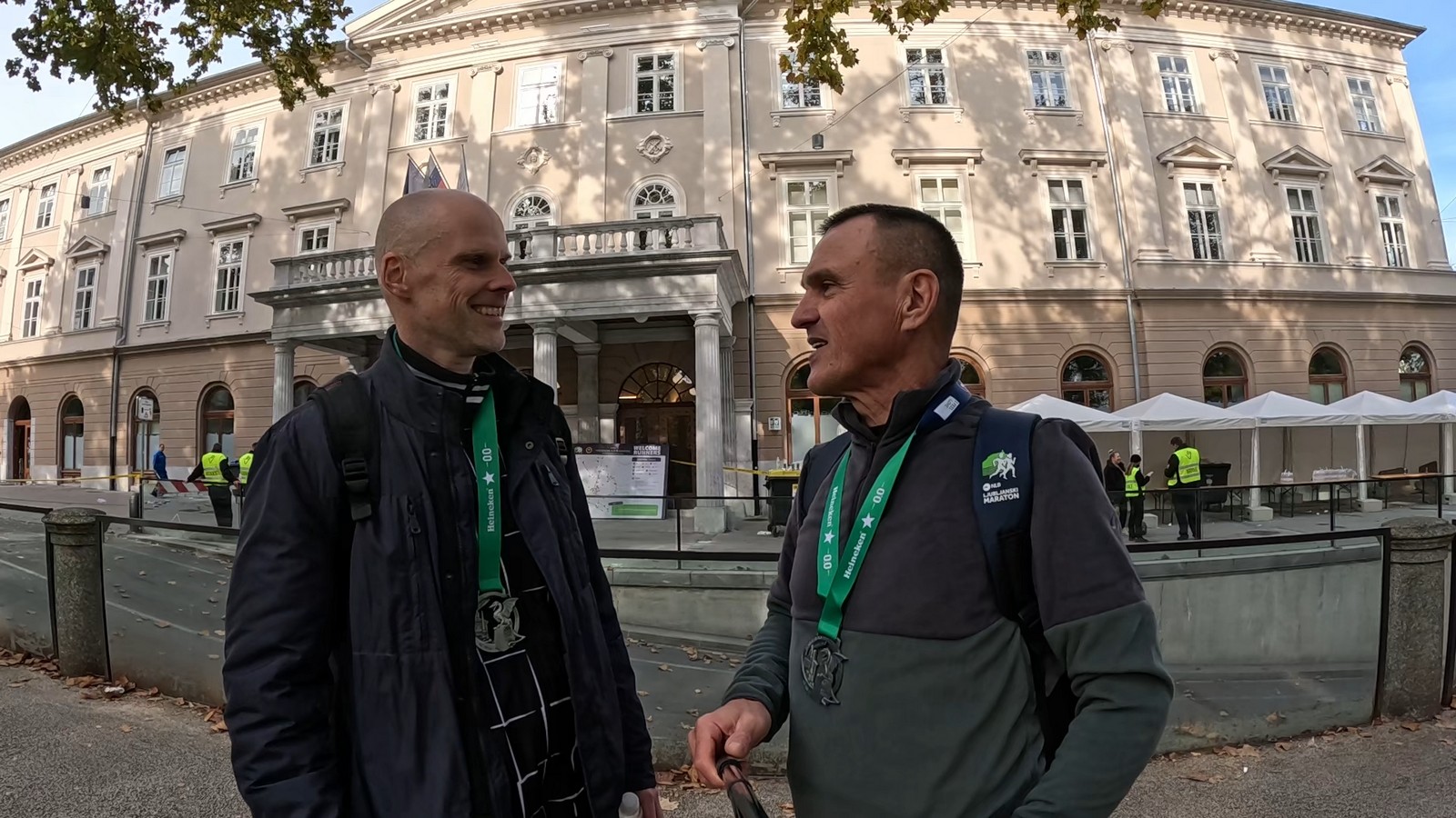 Video zapis je opsežan i sadržava sve što vas može biti zanima na ovom događaju. Osim zgodnih trkača imate i nešto malo zgodnih trkačica i neobično lijepe volontere. Sebastian iz Francuske je gledao moje video zapise i došao je osobno provjeriti kako izgleda taj Ljubljanski maraton. Što reći, osim da se dobar glas daleko čuje, a loš još dalje. 🙂 Kao i uvijek do sada trčali smo i družili se sa ekipom istomišljenika (čitaj istopatnika), a ja sam dobio priliku osobno upoznati trkače iz Grčke, sa Kosova, Ukrajine, Italije… Mnogi su prilazili pozdraviti i upoznati se osobno, jer se puno trkača međusobno prati samo preko sportskih aplikacija (Strava ili Garmin Connect). Zaista je lijepo je sve te ljude napokon vidjeti uživo.