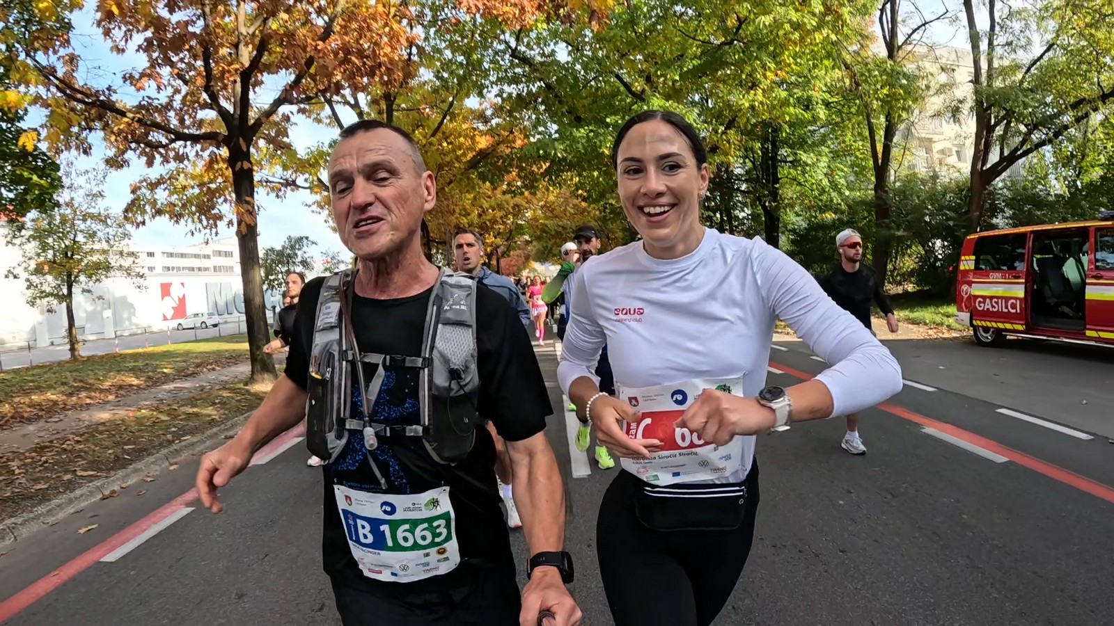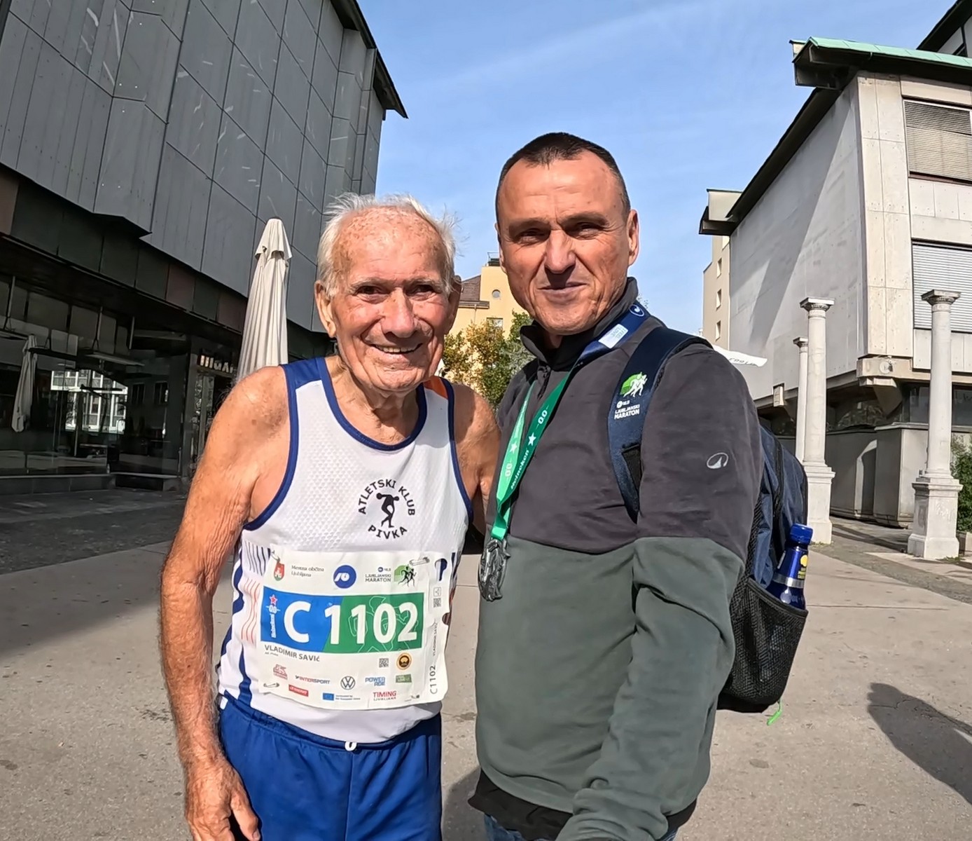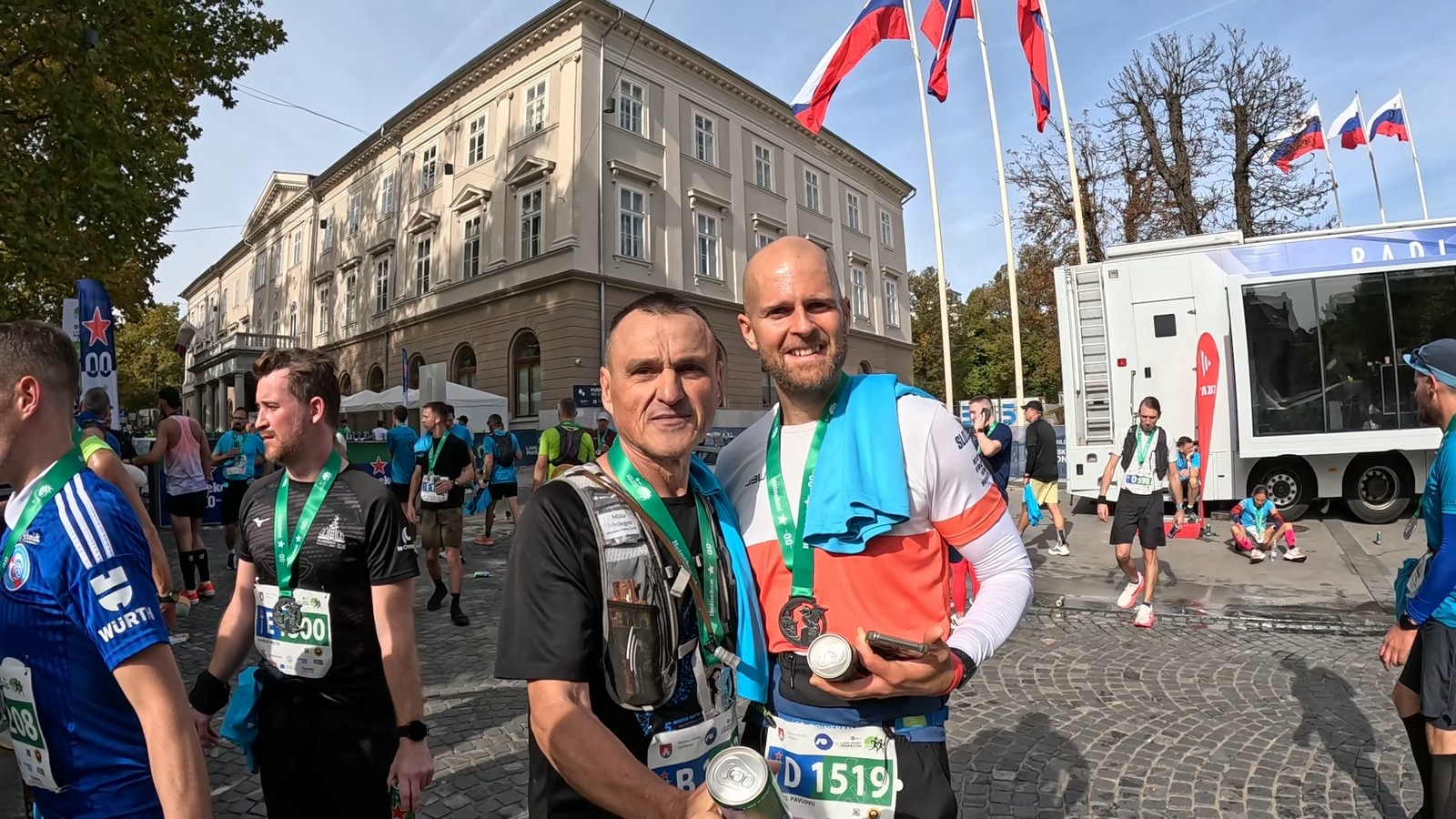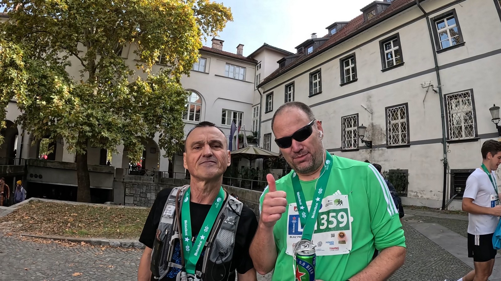 Video zapis je opsežan i sadržava sve što vas može biti zanima na ovom događaju. Osim zgodnih trkača imate i nešto malo zgodnih trkačica i neobično lijepe volontere. Sebastian iz Francuske je gledao moje video zapise i došao je osobno provjeriti kako izgleda taj Ljubljanski maraton. Što reći, osim da se dobar glas daleko čuje, a loš još dalje. 🙂 Kao i uvijek do sada trčali smo i družili se sa ekipom istomišljenika (čitaj istopatnika), a ja sam dobio priliku osobno upoznati trkače iz Grčke, sa Kosova, Ukrajine, Italije… Mnogi su prilazili pozdraviti i upoznati se osobno, jer se puno trkača međusobno prati samo preko sportskih aplikacija (Strava ili Garmin Connect). Zaista je lijepo je sve te ljude napokon vidjeti uživo.