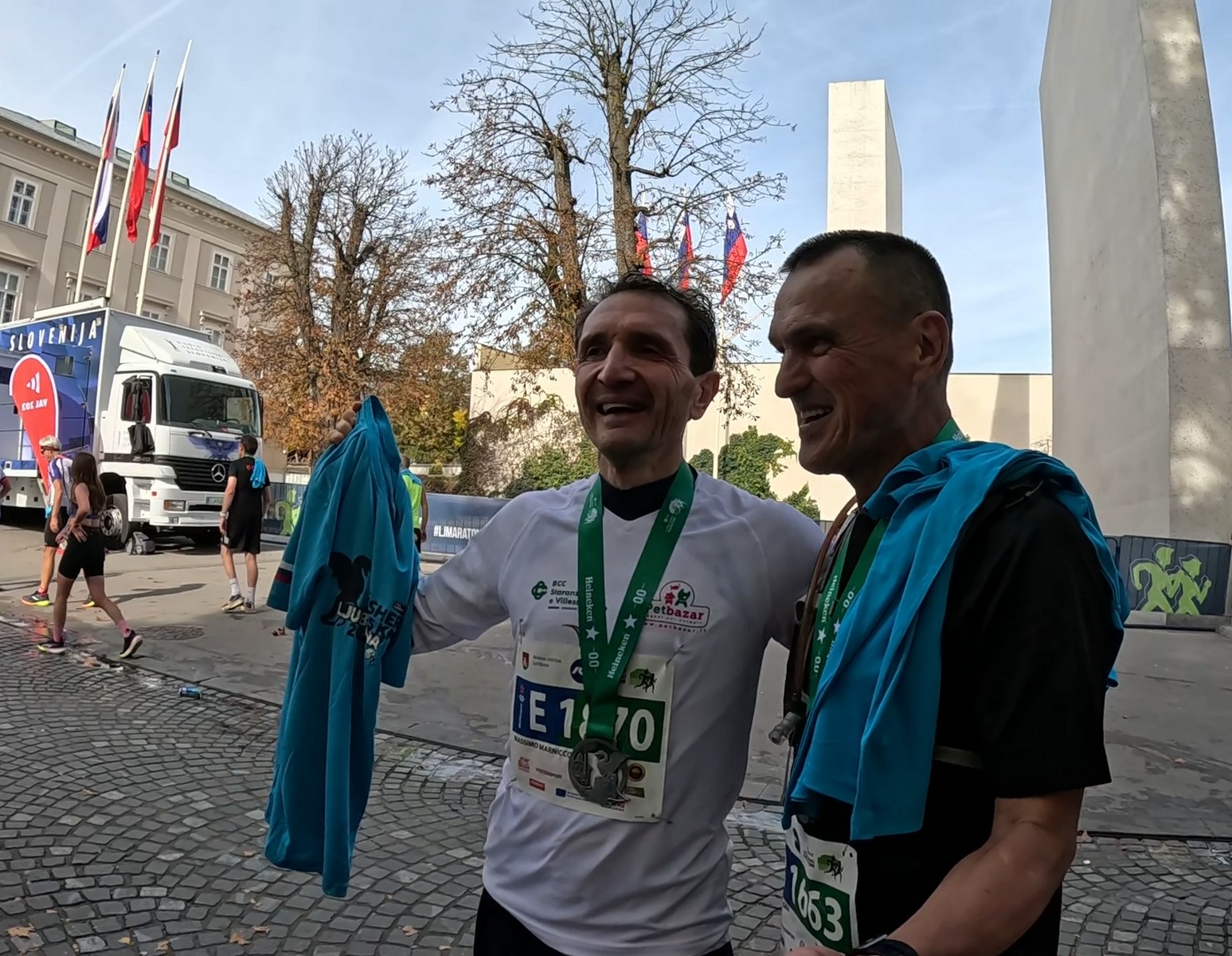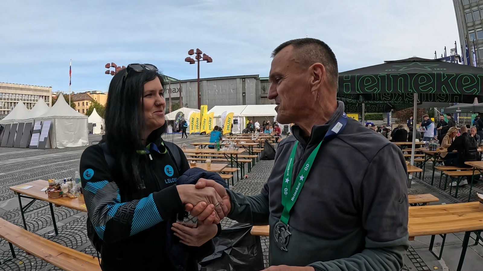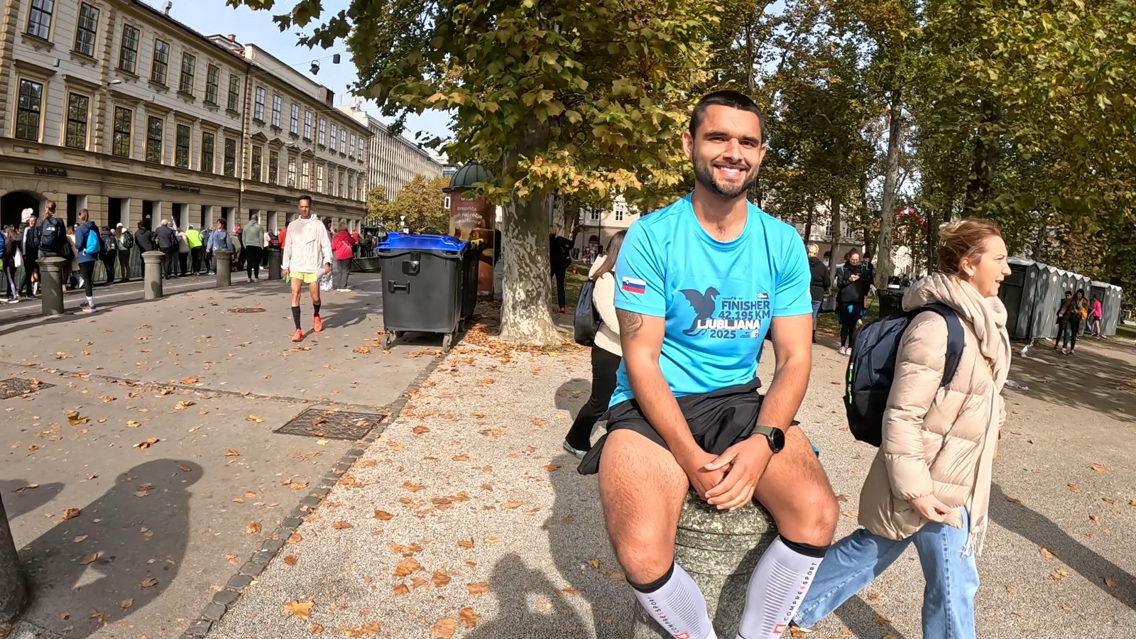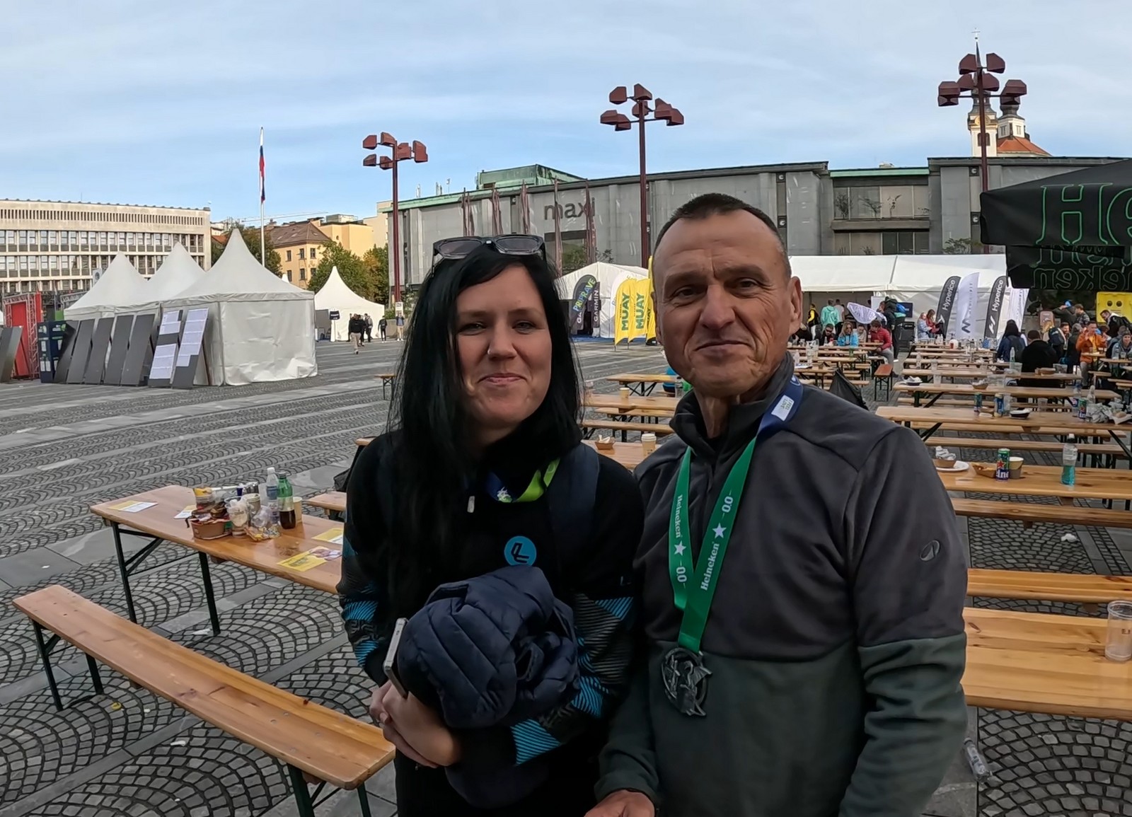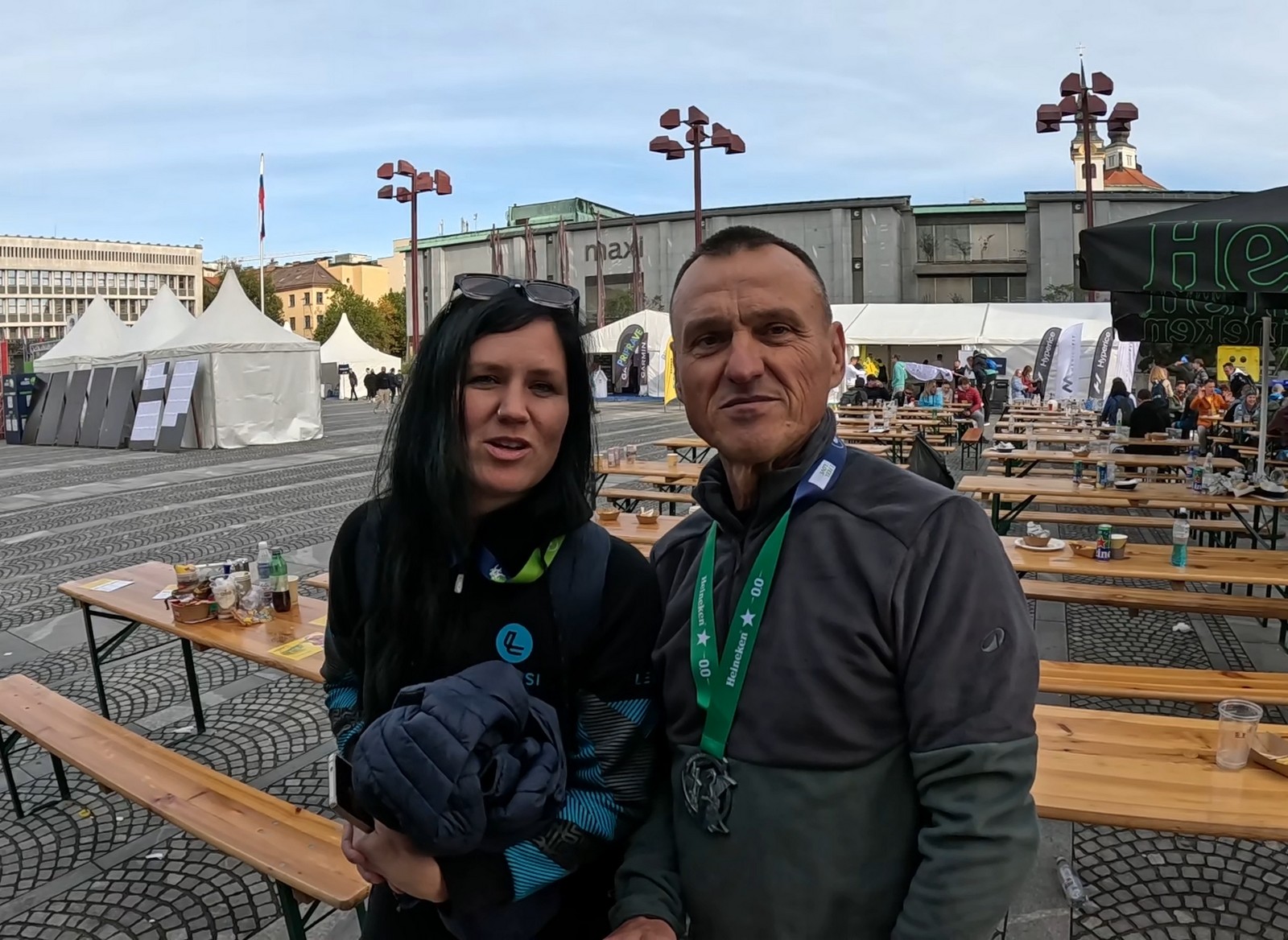 Video zapis je opsežan i sadržava sve što vas može biti zanima na ovom događaju. Osim zgodnih trkača imate i nešto malo zgodnih trkačica i neobično lijepe volontere. Sebastian iz Francuske je gledao moje video zapise i došao je osobno provjeriti kako izgleda taj Ljubljanski maraton. Što reći, osim da se dobar glas daleko čuje, a loš još dalje. 🙂 Kao i uvijek do sada trčali smo i družili se sa ekipom istomišljenika (čitaj istopatnika), a ja sam dobio priliku osobno upoznati trkače iz Grčke, sa Kosova, Ukrajine, Italije… Mnogi su prilazili pozdraviti i upoznati se osobno, jer se puno trkača međusobno prati samo preko sportskih aplikacija (Strava ili Garmin Connect). Zaista je lijepo je sve te ljude napokon vidjeti uživo.