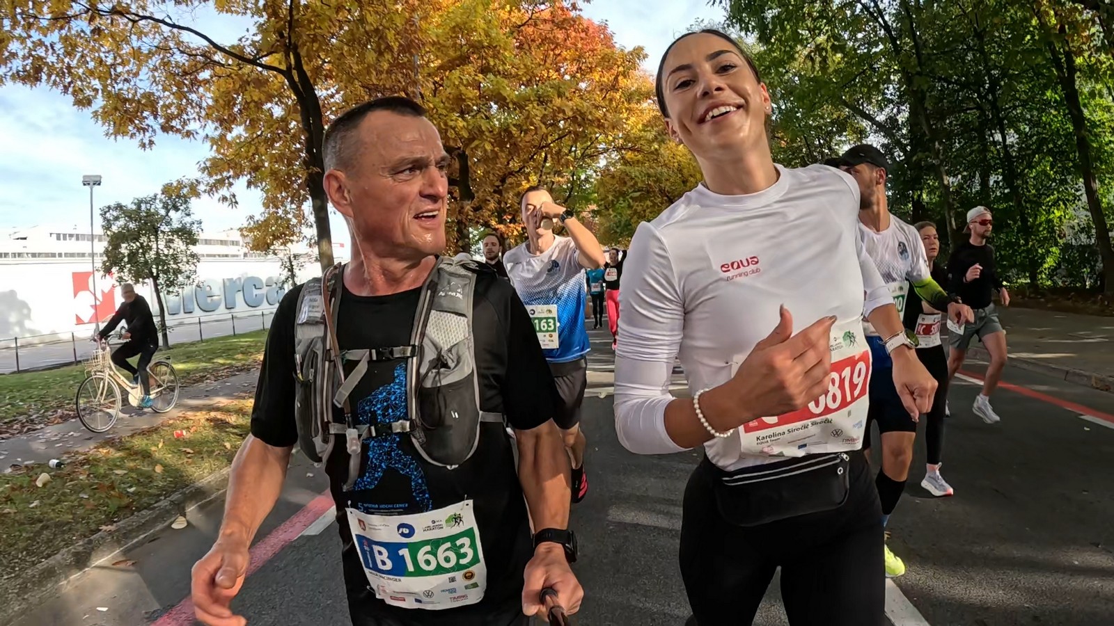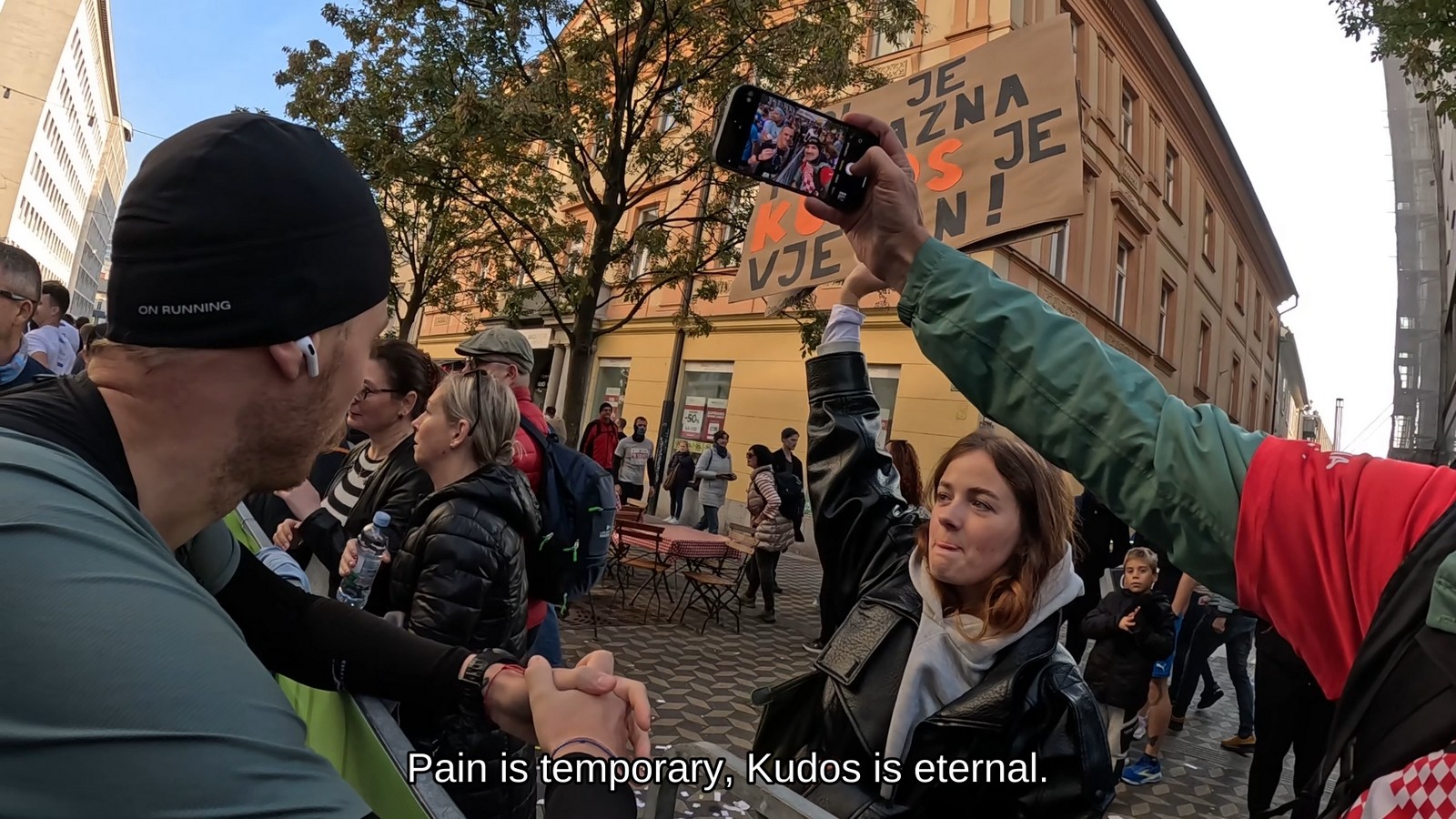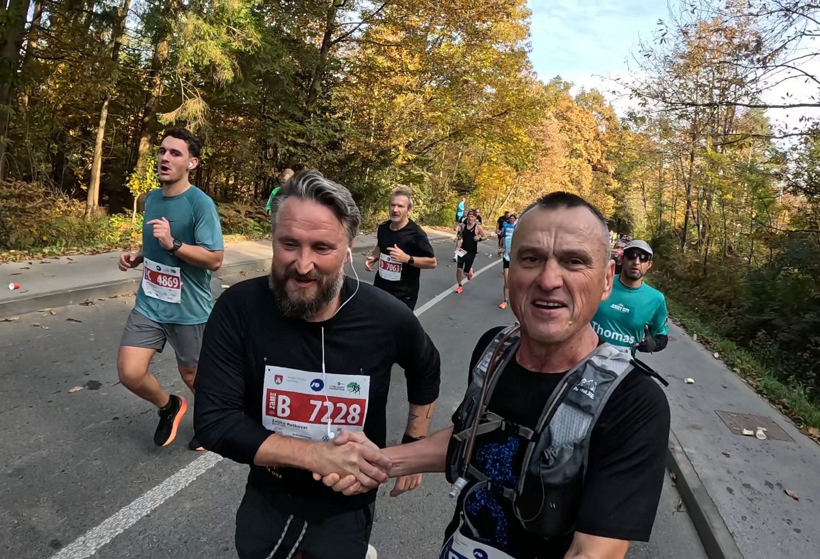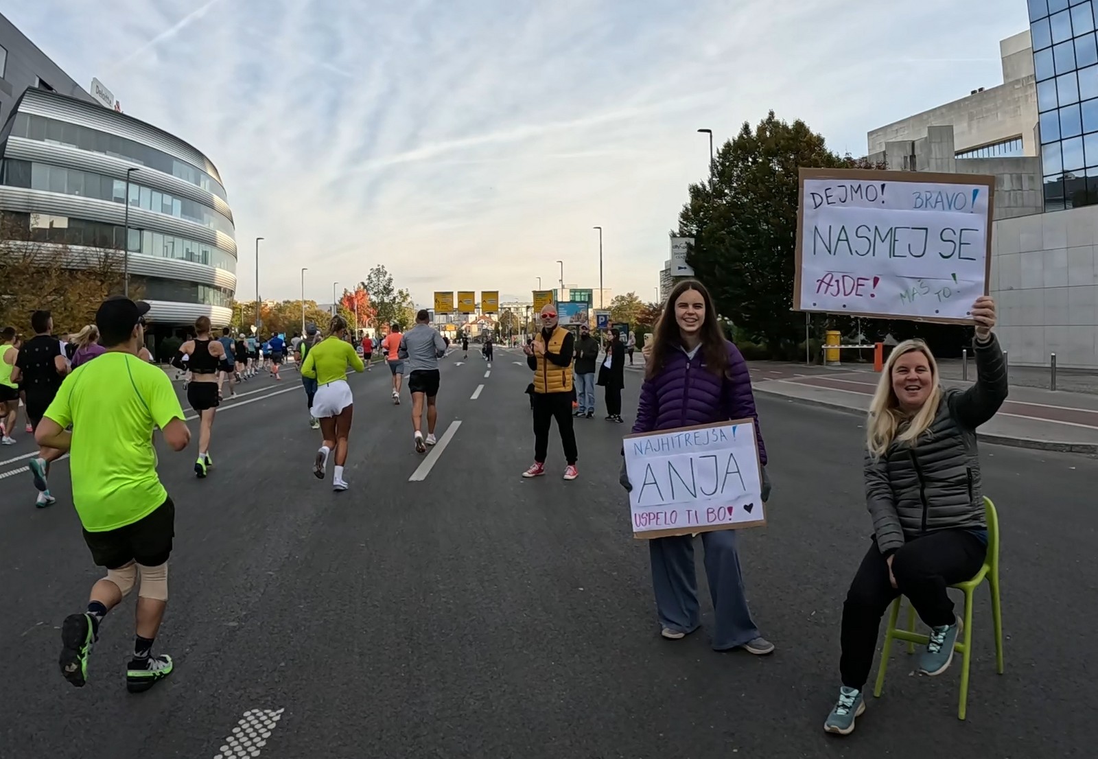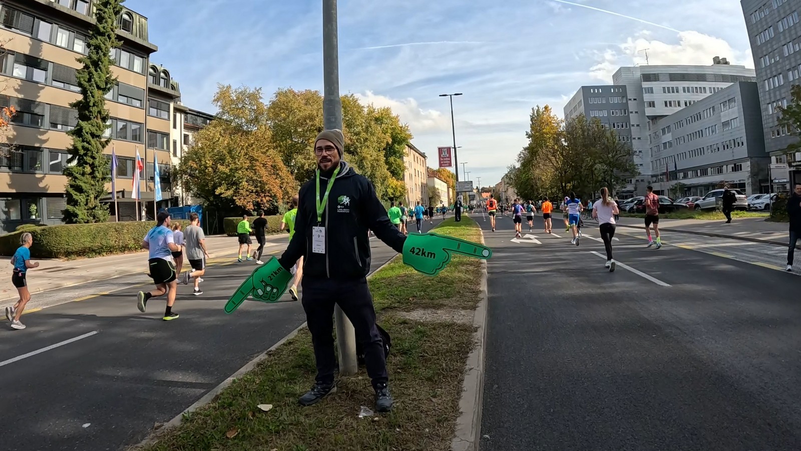Video zapis je opsežan i sadržava sve što vas može biti zanima na ovom događaju. Osim zgodnih trkača imate i nešto malo zgodnih trkačica i neobično lijepe volontere. Sebastian iz Francuske je gledao moje video zapise i došao je osobno provjeriti kako izgleda taj Ljubljanski maraton. Što reći, osim da se dobar glas daleko čuje, a loš još dalje. 🙂 Kao i uvijek do sada trčali smo i družili se sa ekipom istomišljenika (čitaj istopatnika), a ja sam dobio priliku osobno upoznati trkače iz Grčke, sa Kosova, Ukrajine, Italije… Mnogi su prilazili pozdraviti i upoznati se osobno, jer se puno trkača međusobno prati samo preko sportskih aplikacija (Strava ili Garmin Connect). Zaista je lijepo je sve te ljude napokon vidjeti uživo.
