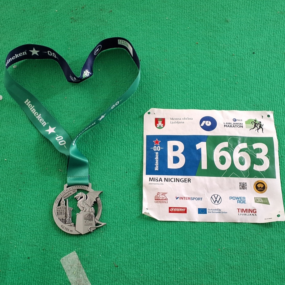 Što se organizacije maratona tiče. Na Expou je bila jako dobra ponuda sportske opreme, sa povelikim popustima od minimano 30%. Startn paket standardno jako dobar, a ovoga puta je to bio funkcionalan sportski ruksak, nešto drugačiji od onog od prije dvije godine, koji je imao više poslovnu primjenu (laptop i slično). Lelosi majica, kvalitetan personalizirani broj, prekrasna medalja i na kraju finišerska majica samo za one koje prođu kroz Cilj. A na stazi milijun gelova, voće, čokolade, voda, sokići, magneziji, ledeni sprej, masaža na nekoliko lokacija… Glazba, navijači, roditelji, djeca, kompletno zatvoren promet bez imalo ispušnih plinova pokraj trkača. NLB Ljubljana marathon – uvijek očara ili da budem precizan nikad ne razočara. Vidimo se vjerojatno još koji put…