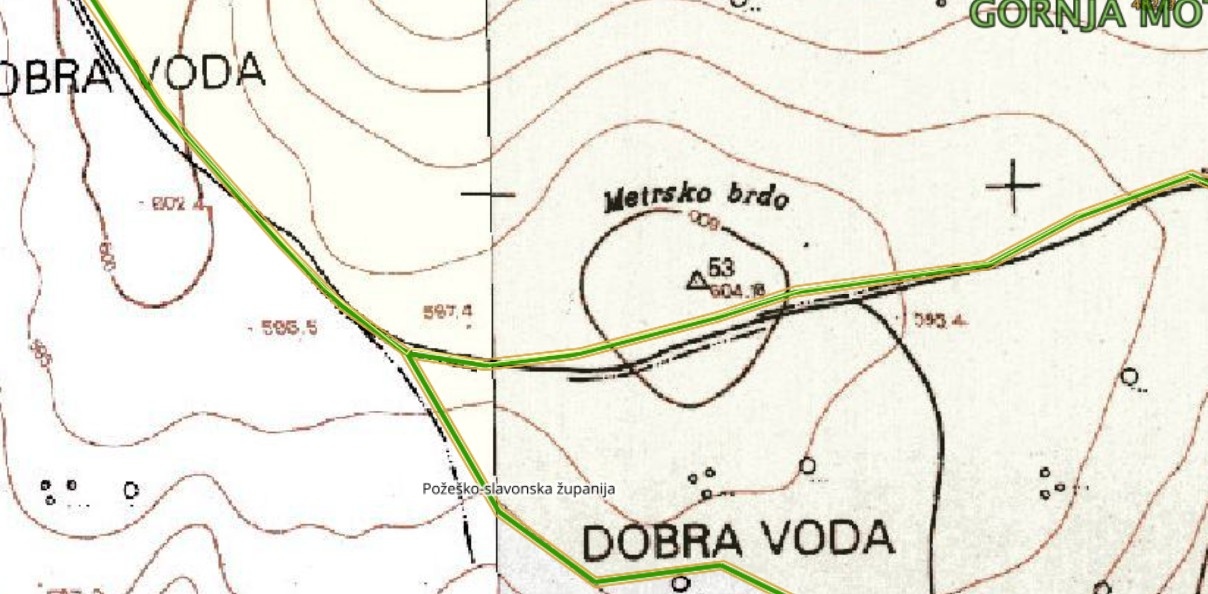 Nije čudno ako niste čuli za Metrsko brdo. Te male uzvisine u blizini izvora Dobra voda na SPP-u odavno nema na kartama, zbog svoje neatraktivnosti postoji samo nadmorska visina – 604 m. A riječ je o najvišem vrhu Osječko-baranjske županije. Petrov vrh koji mnogi smatraju najvišim vrhom OBŽ, to ne može nikako biti, jer se isti nalazi u Virovitičko-podravskoj županiji.