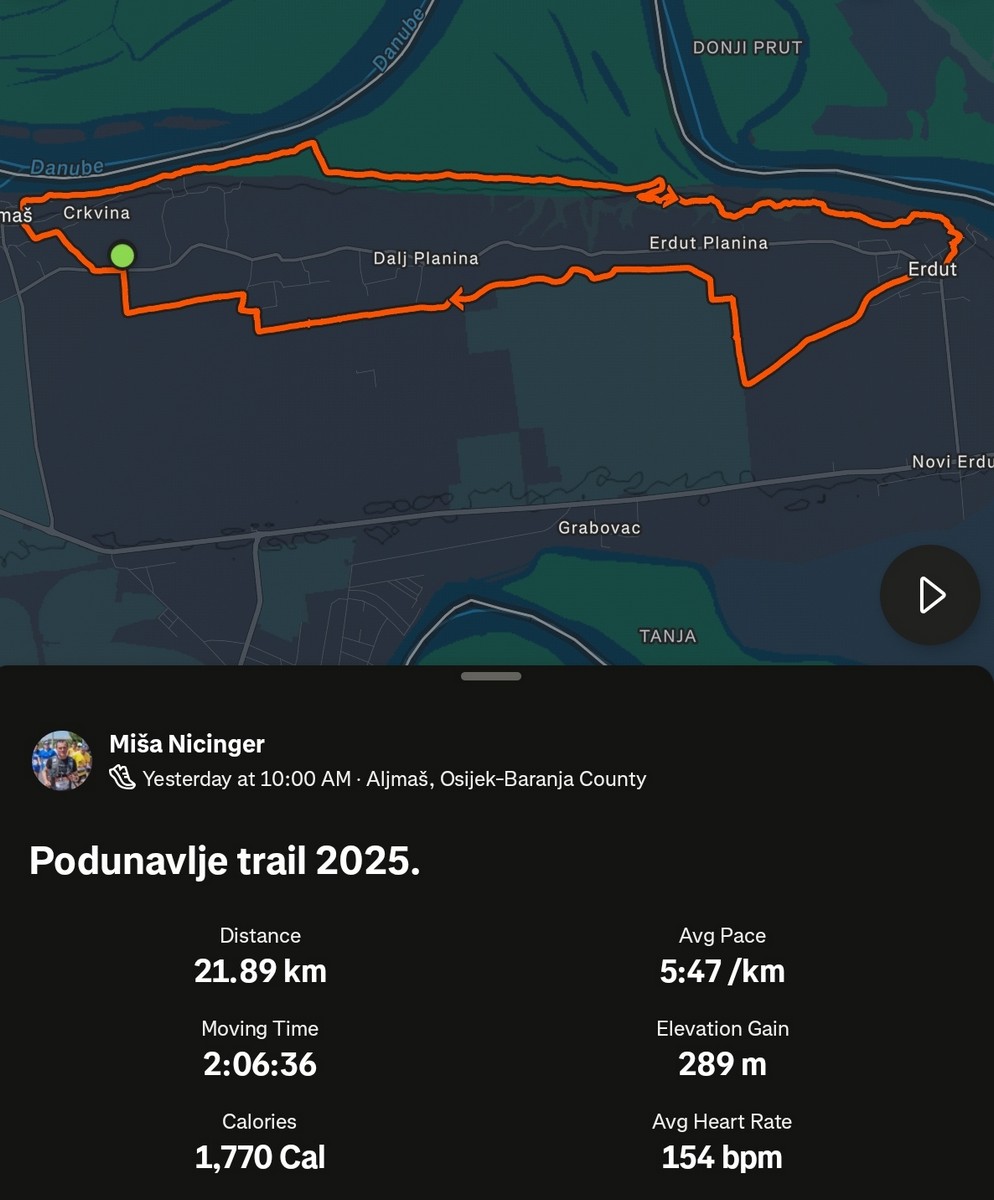 Iako je Slavonsko-baranjska trail liga trebala završiti u Slatini, sa utrkom “Popišanac trail” prije dva mjeseca, točnije 18.10.2025. god., zbog besmislenih odluka i zabrana okupljanja na otvorenom (Afrička svinjska kuga) – Podunavlje trail je sa 04.10.2025. pomaknut na 06.12.2025. god. Preživjeli smo pretumbacije i sa dva mjeseca zakašnjenja istrčali ovu lijepu i brzu utrku od Aljmaša do Erduta i nazad.