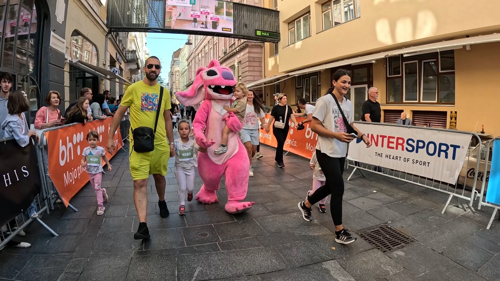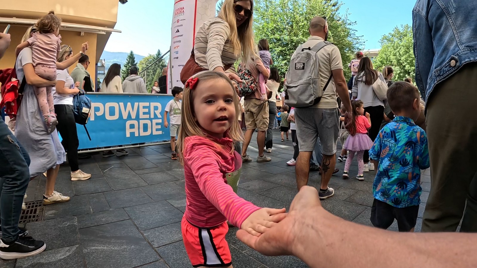 Domaćini su u subotu priredili prekrasni “Bambini maraton” za klince i klinceze od 5-6 godina, a oni malo stariji su trčali sa braćom i sestrama kao podrška. Čak su i mene pustili (hvala) da malo trčim sa djecom i snimim komadić video zapisa sa staze. Moram priznati da je atmosfera bila fantastična i turbo zabavna. Klincima su podijelili tonu slatkiša i sokića, pjevalo se i plesalo. Morao sam sve snimiti. 🙂