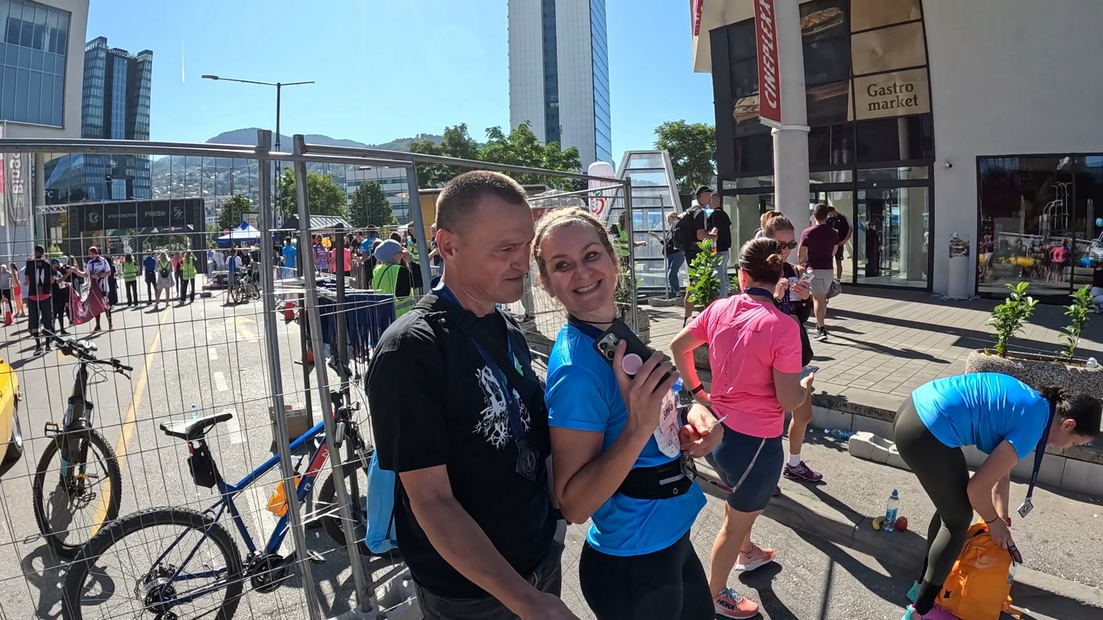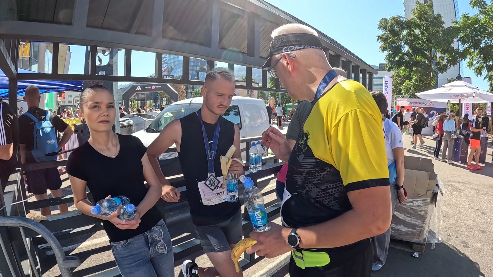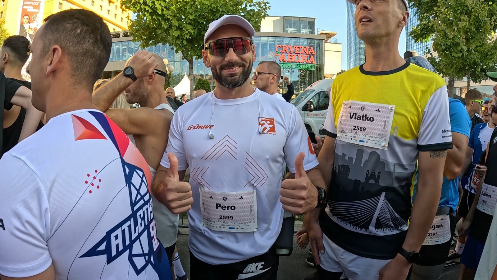 Sve u svemu, uspio sam odraditi nekoliko intervjua na stazi sa mladim trkačima i onima u srednjoj dobi. Pa slobodno zavirite, lajkajte, šerajte, kudite i hvalite, kao što ja hvalim volontere na utrkama- ovoga puta je to prekrasna, mlada, lijepa i vesela ekipa iz Prve bošnjačke gimnazije Sarajevo, koji su nam maksimalno pomogli da preživimo pakao na stazi. Vjerujem da je trkačima koji išli između 2 i 3 sata bilo jako teško na +32°C. Trebala je puno snage, tekućine i glikogena u krvi, i podrške na stazi da se stigne do Cilja. Nemate vi pojma koliko je malo potrebno da čovjek dobije volju, snagu i nastavi do konačnog cilja.