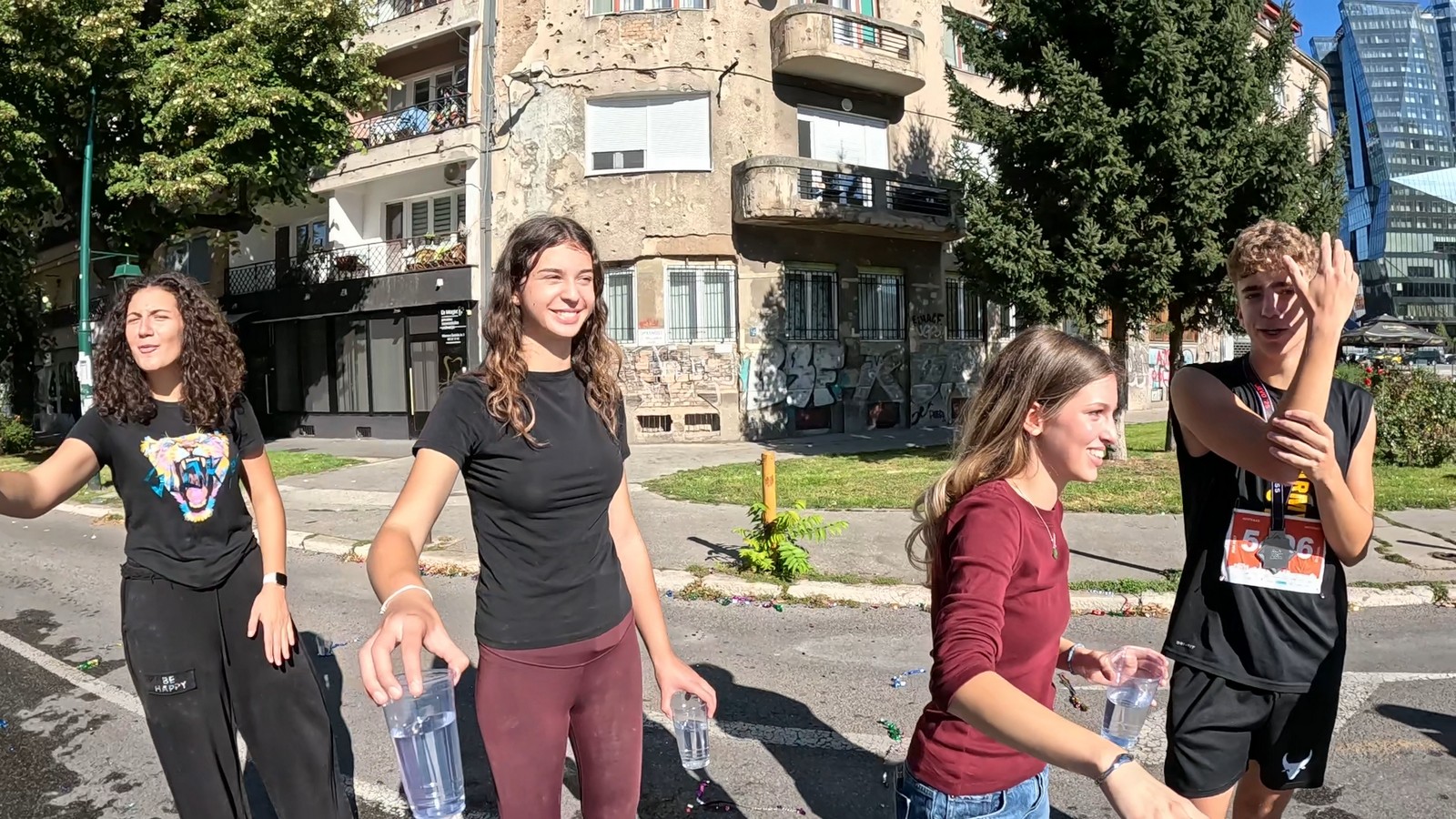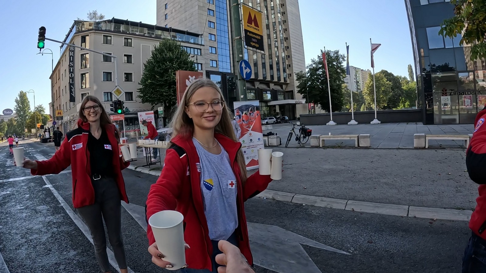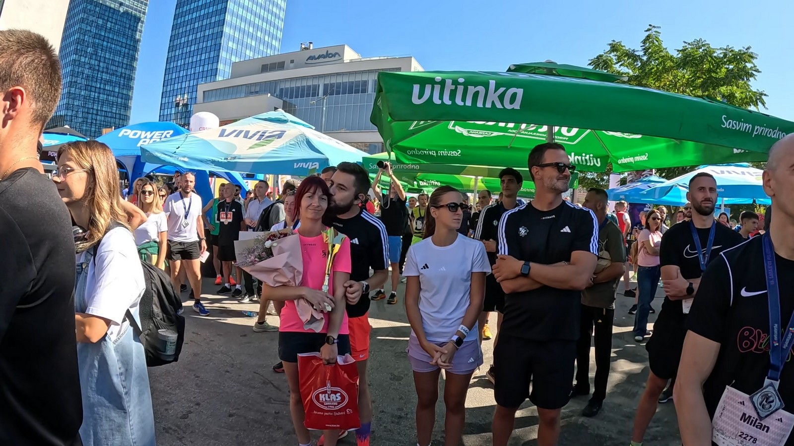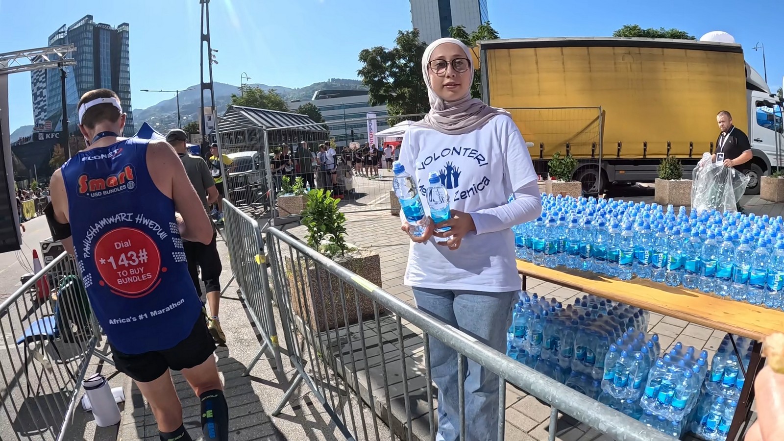Sve u svemu, uspio sam odraditi nekoliko intervjua na stazi sa mladim trkačima i onima u srednjoj dobi. Pa slobodno zavirite, lajkajte, šerajte, kudite i hvalite, kao što ja hvalim volontere na utrkama- ovoga puta je to prekrasna, mlada, lijepa i vesela ekipa iz Prve bošnjačke gimnazije Sarajevo, koji su nam maksimalno pomogli da preživimo pakao na stazi. Vjerujem da je trkačima koji išli između 2 i 3 sata bilo jako teško na +32°C. Trebala je puno snage, tekućine i glikogena u krvi, i podrške na stazi da se stigne do Cilja. Nemate vi pojma koliko je malo potrebno da čovjek dobije volju, snagu i nastavi do konačnog cilja.